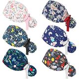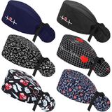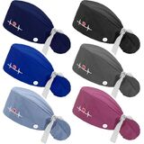 6 x Scrub caps with buttons ponytail holder and sweatbands