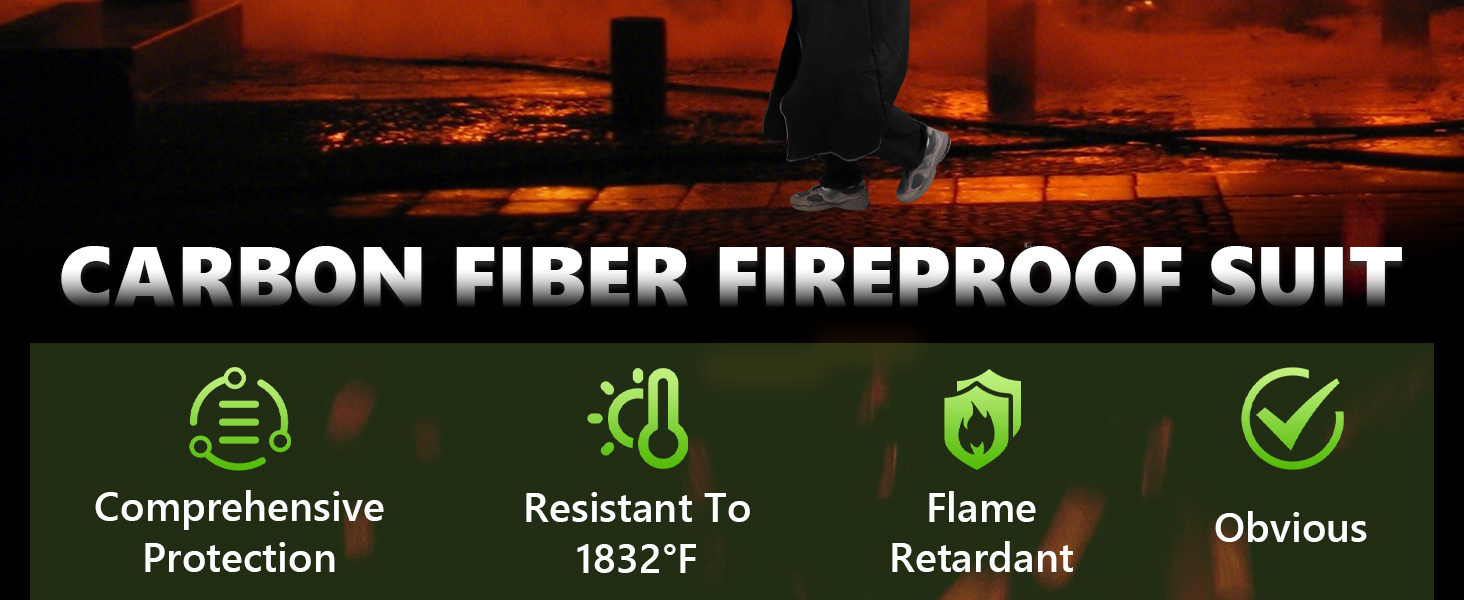 Carbon Fibre Material: The heat resistant suit is made of carbon fibre material with excellent heat resistance. It can withstand flames and radiant heat up to 1832°F, and it is suitable for repeated use. It can effectively protect you and prevent you from getting hurt.