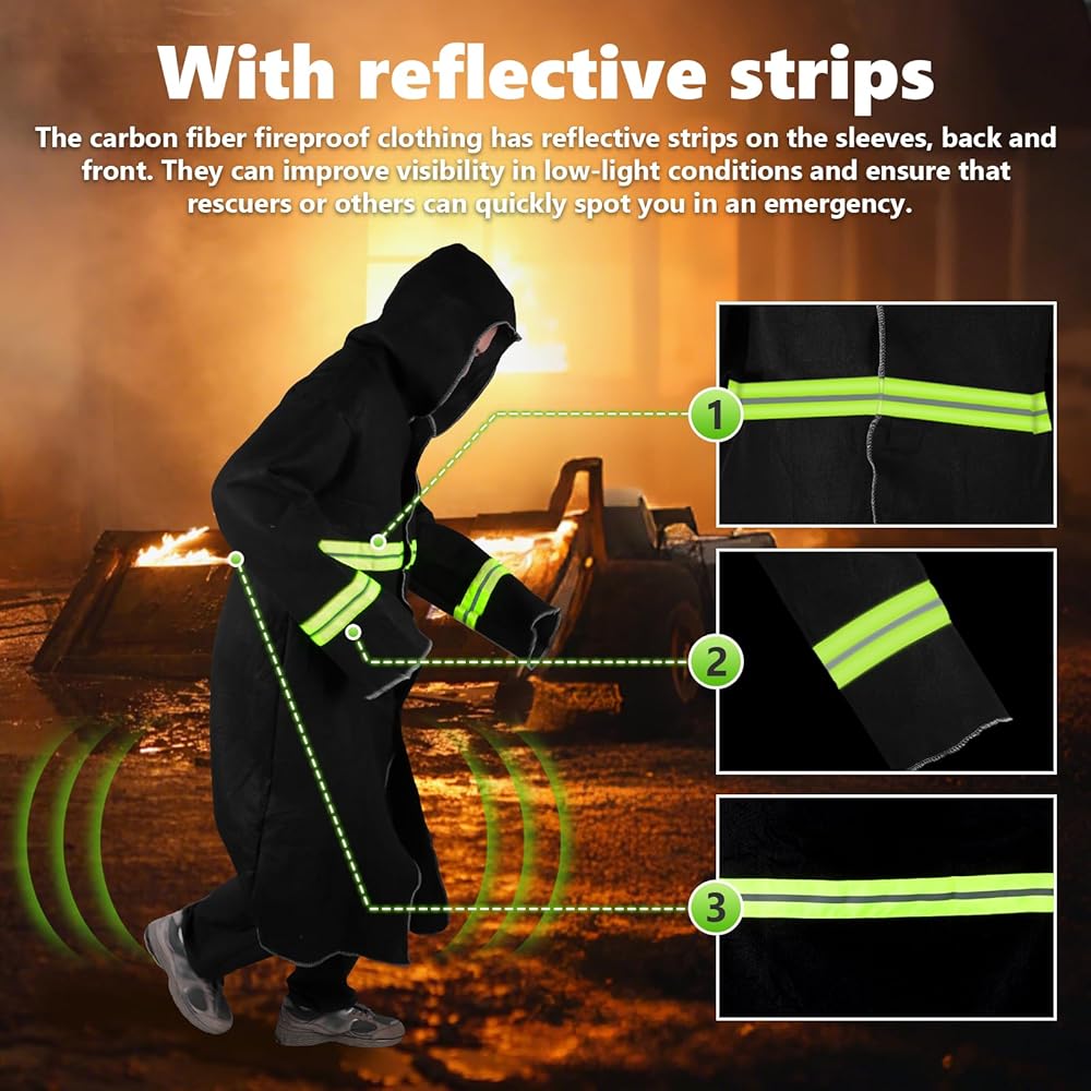 Comprehensive Protection: The carbon fiber fire resistant suit has extended sleeves, which can effectively protect your hands. Its hood design ensures the safety of your head and neck, allowing for quick movement.