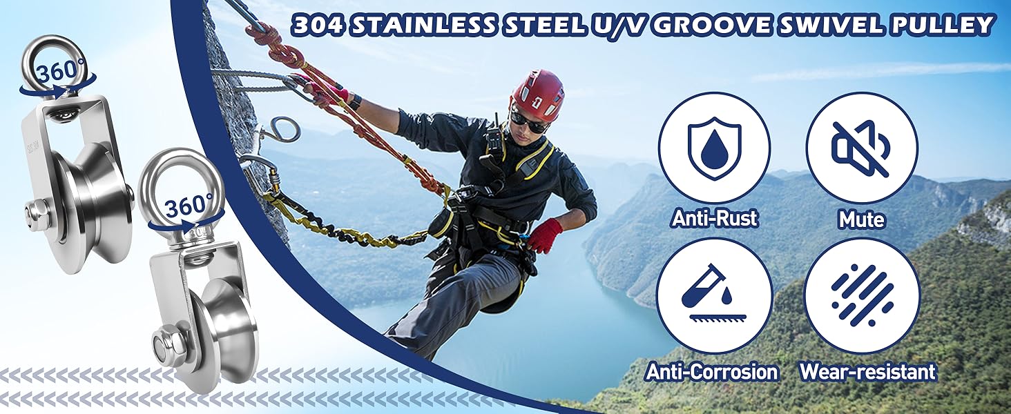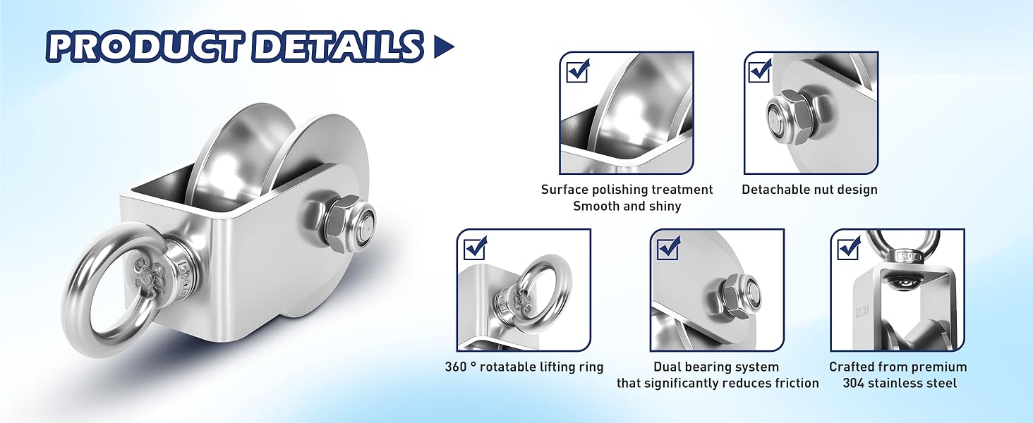 Dual Bearing Design: Our stainless steel pulley features a dual bearing system that significantly reduces friction, ensuring quieter and smoother operation for all your lifting needs