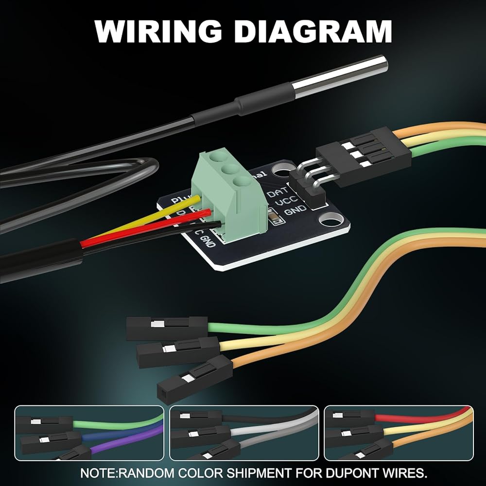 Reliable 1-Wire Interface & Tip: The adapter board has an integrated pull-up resistor, enabling direct connection to the Raspberry Pi GPIO without an external resistor. Utilizes the robust Dallas 1-Wire protocol for simplified communication. For optimal stability, use a 4.7K resistor between Data (Yellow) and VCC (Red).