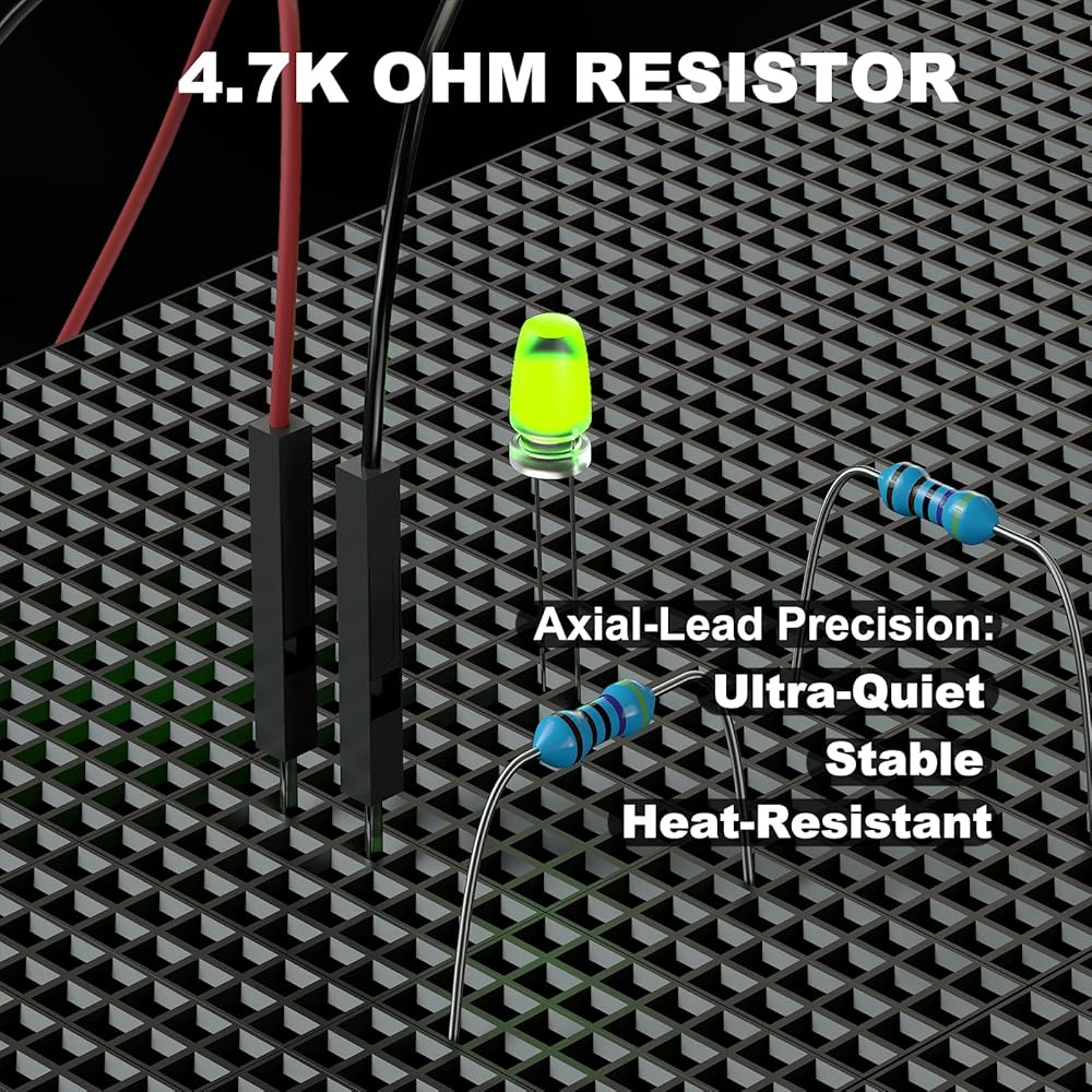 DROK 5 Pack Waterproof DS18B20 Temperature Sensor Probes with a Probe Adapter Board, 3 pin Female to Female Jumper Wires and 5 Pack 4.7K ohm Resistors for Arduino Raspberry Pi DIY