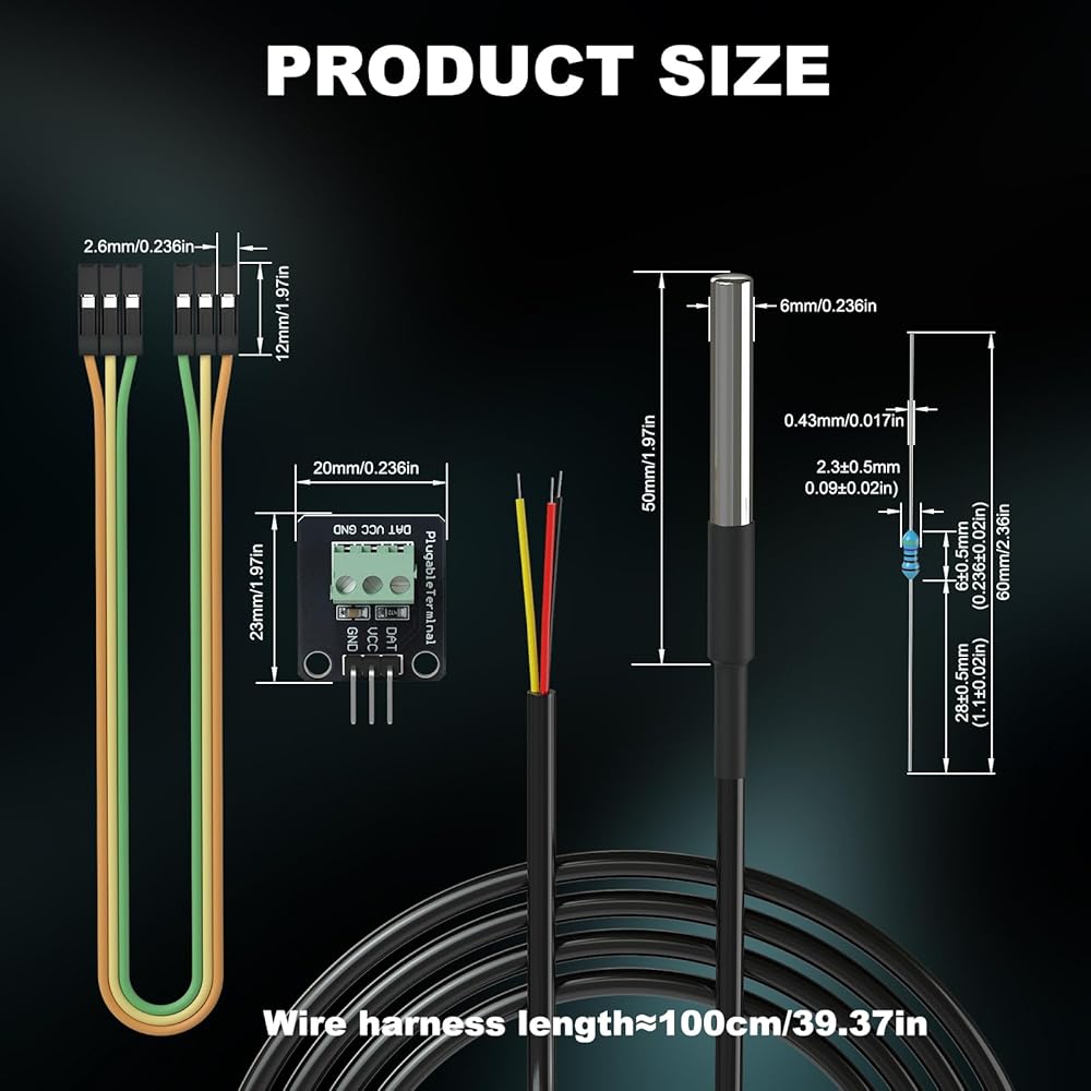 Waterproof & Durable Stainless Steel Probe: Encased in waterproof, corrosion-resistant, rustproof stainless steel with highly thermally conductive sealant. Perfect for continuous submersion, wet environments, and harsh conditions.