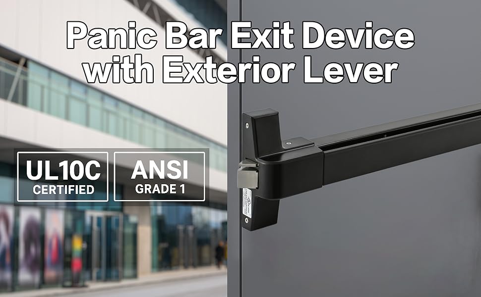 Exterior Lever Lock & Key Set Includes an exterior lever handle and key set, providing secure entry from outside while maintaining fast, safe push-to-exit access from inside.