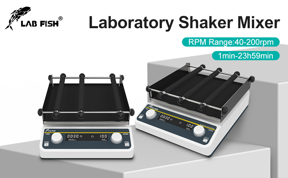 【Precise Speed & Timer Control】:Independent digital LCD displays for speed and time. Adjust speed from 40-200 RPM and set timer from 1 min to 23h 59min or use continuous mode to meet diverse testing and experimental needs.
