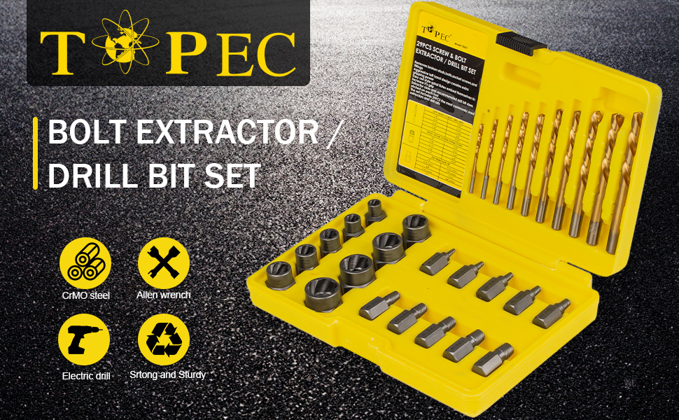 【WIDELY USED】All premium industrial grade bolt extractors are strictly designed. The grip is firm, not easy to fall off, and provides more torque. Easily remove damaged bolts, nuts and screws even if they are peeled, rusted or frozen. Suitable for power drills, flat or allen wrenches, tap adapters.