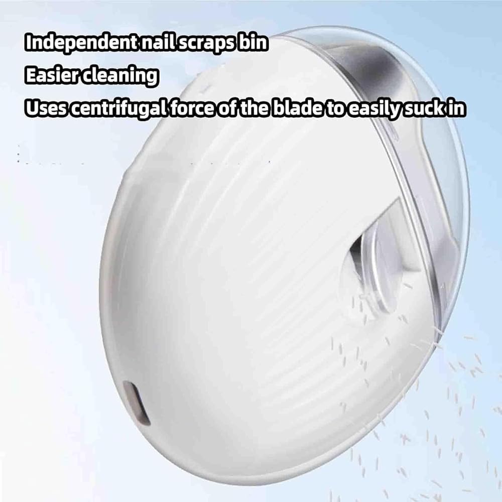 Electric nail clippers automatically trim nails for home use, Type-C rechargeable, 2-speed adjustment, 40 decibel light sound, low vibration, nail scraps bin, easier to clean, using the centrifugal force of the blade, easy to inhale, prevent nail scraps from splashing, and the trimmed scraps are sucked into the scraps storage bin. When cleaning, turn the cover to easily pour out the debris. The powerful alloy blade makes trimming easier without getting stuck. It comes with an auxiliary light, so you can trim easily even in dim conditions.