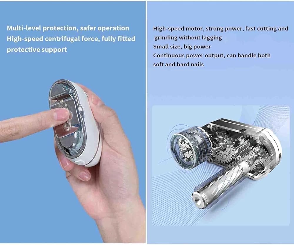 The electric nail grinder starts automatically upon contact with the nail, providing 360° smooth and even filing without any manual pressure. This feature protects the nail surface, while the transparent storage compartment keeps clippings contained—making it safe and easy for beginners and alike.