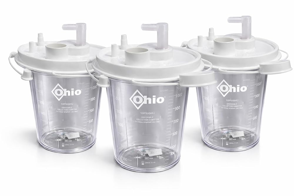 The Ohio Medical 1200cc Hi-Flow Suction Canister is a rigid, disposable container designed for high-volume collection of fluids. Height 7.5" Top Diameter 6.13" Bottom Diameter 4.0"