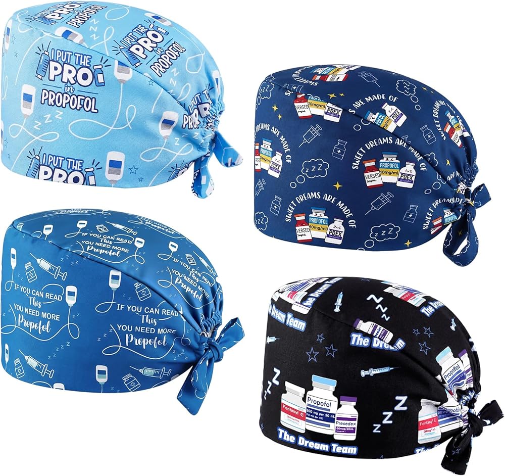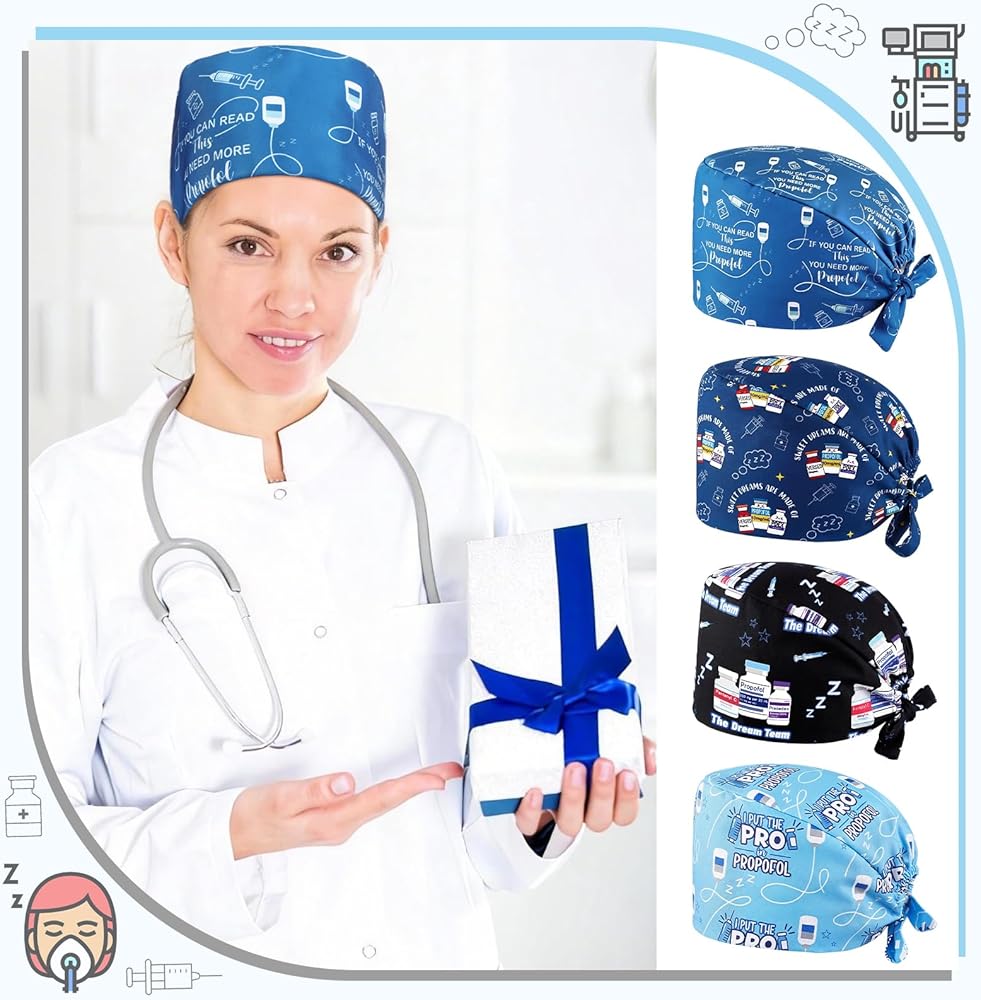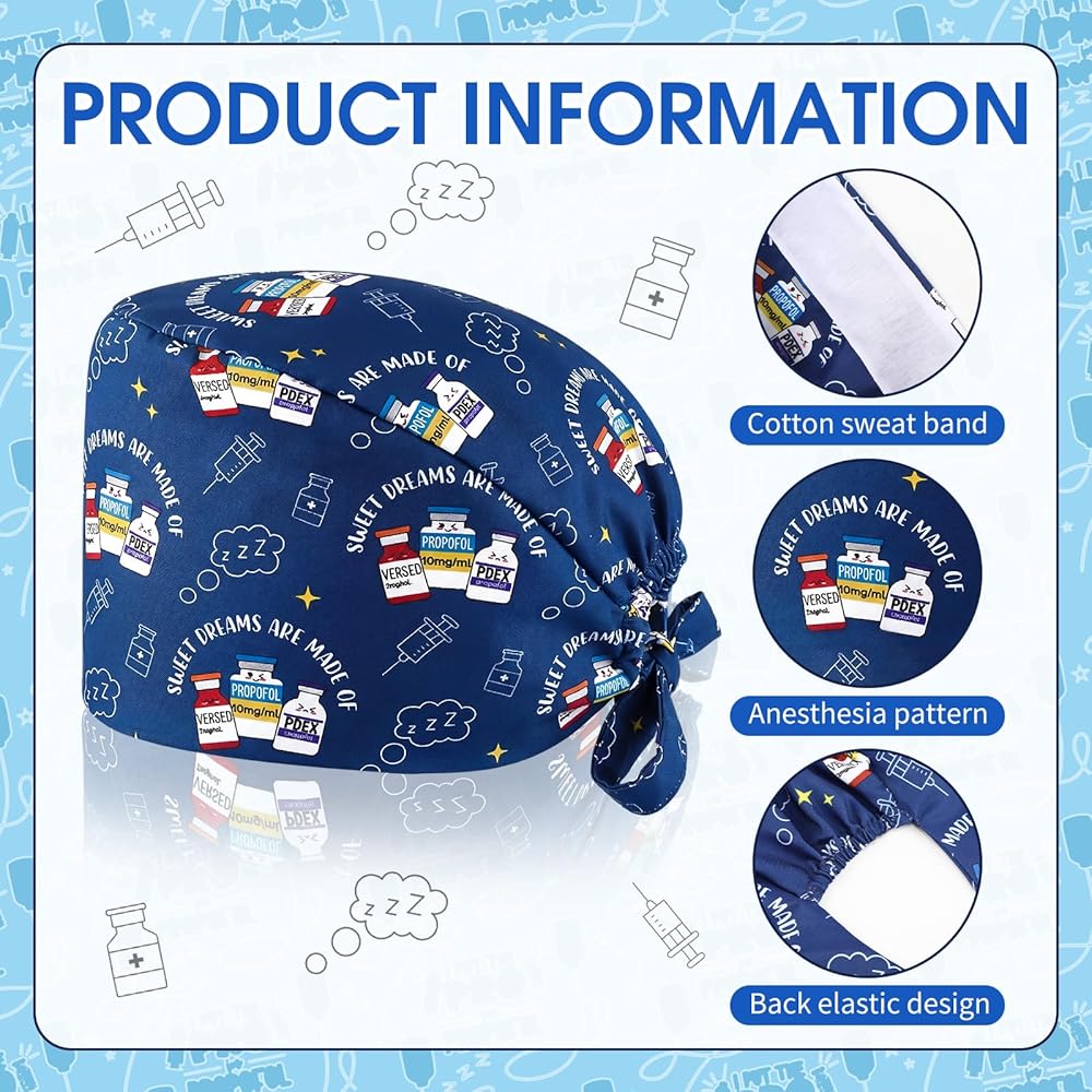 • Exclusive Design: with 4 pack scrub caps for anesthesiologist in a variety of multicolored style, these anesthesia surgical hats provide options for daily rotation use; This breaks away from traditional nurse surgical caps and directly showcases the anesthesiologist's professional identity; Whether for personal use, as part of a department's medical supplies, or as a thoughtful Anesthesia Tech Week gift for colleagues, these anesthesia hats offer highly practical and stylish headwear