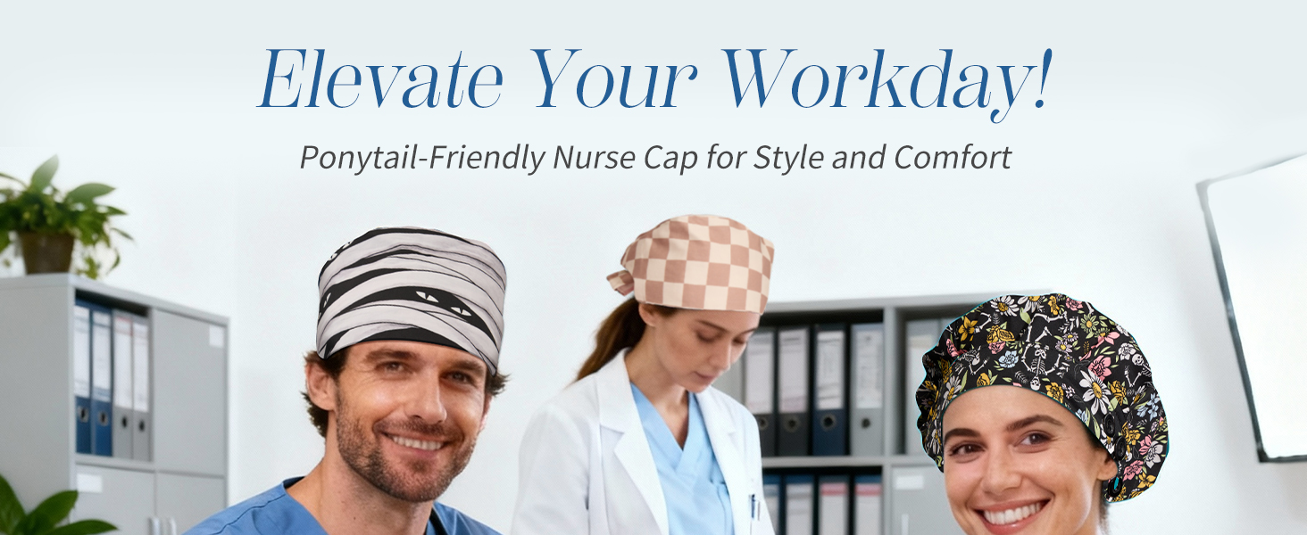 Stylish Prints with Bonus Scrunchies: Add style to your workday with vibrant, fade-resistant prints and trendy patterns. Includes two satin scrunchies that perfectly match the scrub cap, creating a coordinated look with your nurse uniform