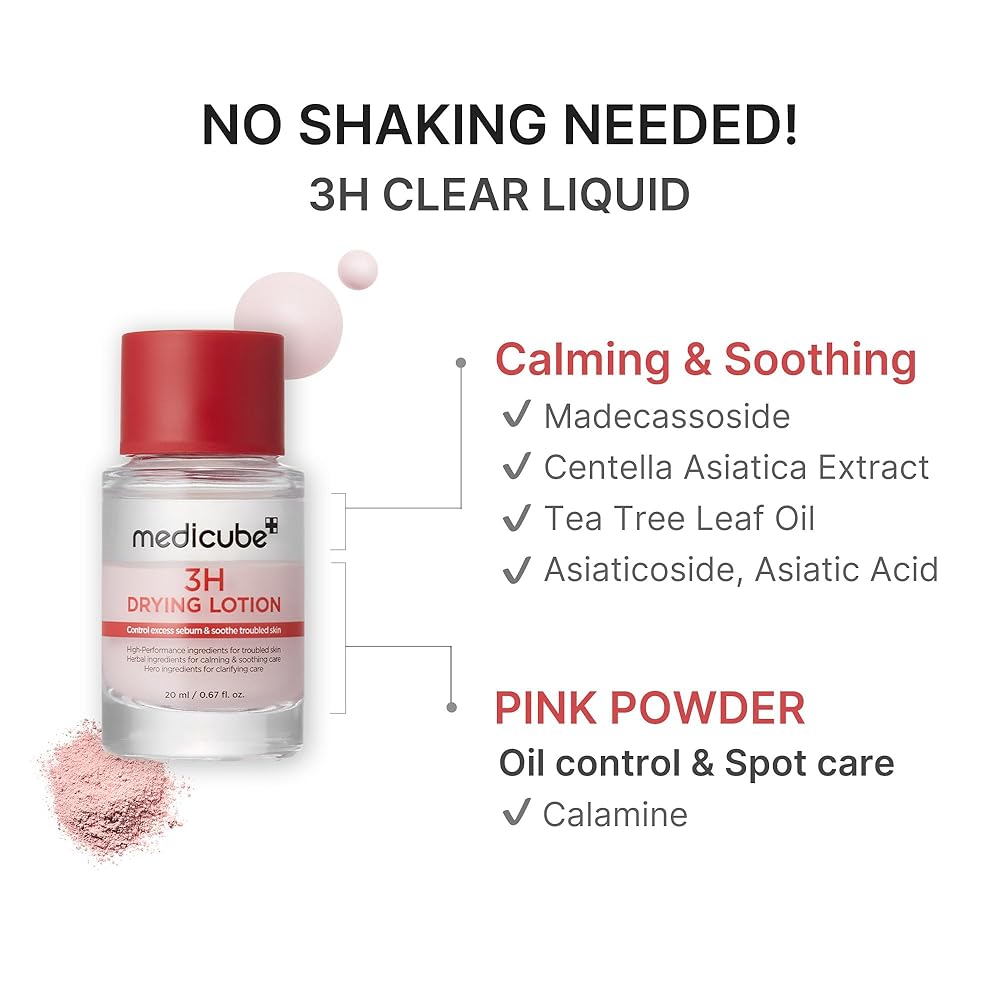 medicube 3H Overnight Drying Lotion | Targeted Spot Care for Troubled & Oily-Prone Skin | Calming & Soothing Care with Calamine, Centella & Tea Tree | Korean Skincare 20ml, 0.67 fl. oz.