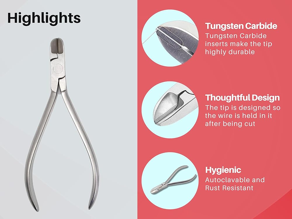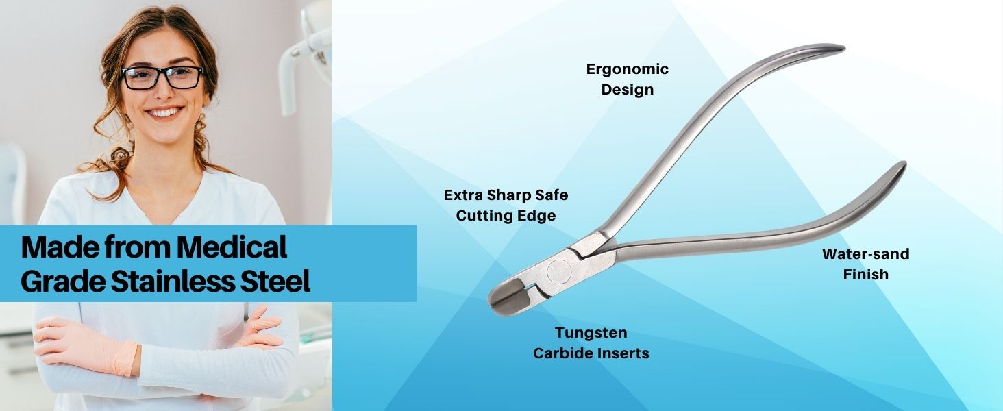 Precision Cutting Design - Built with tungsten carbide inserts to deliver clean, controlled cuts through hard and soft orthodontic wires, including archwires and ligatures, without excessive force.