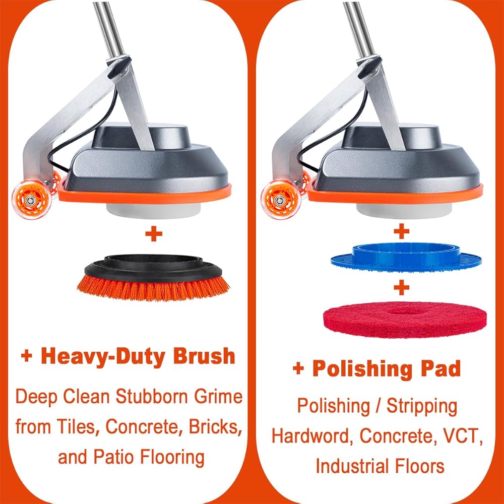 Commercial Grade Orbital Floor Scrubber & Buffer & Polisher: Great for Deep Cleaning Tile and Grout, Hardwood, Vinyl, Concrete, Shower Pan, Marble, Travertine & More Hard Floors