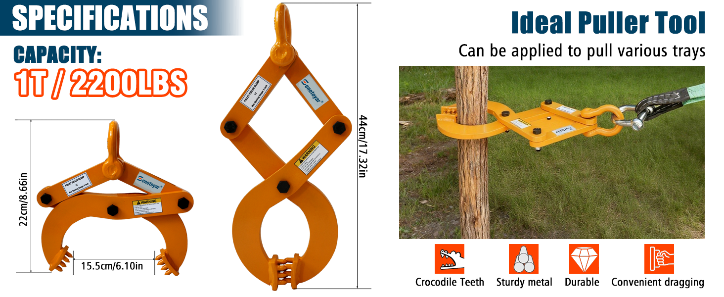 Heavy-Duty 2204 LBS Capacity:This industrial-grade pallet puller clamp delivers massive 2204 lbs capacity. Perfect as a stump puller and brush puller, its solid steel construction handles extreme forces, making it the ultimate tree puller tool for demanding jobs.
