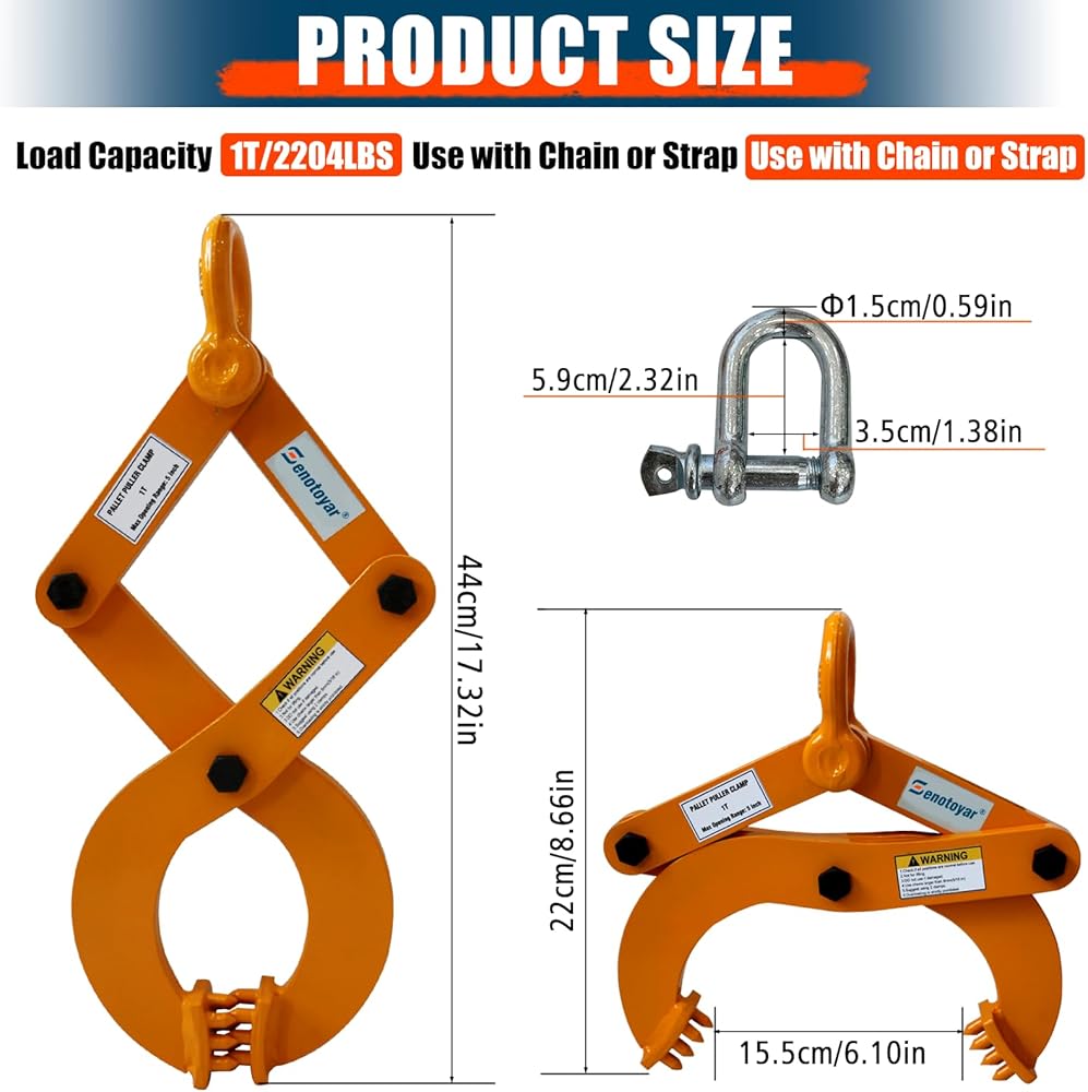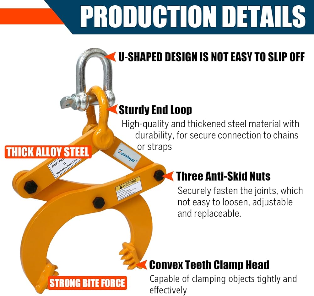 Universal Compatibility & Secure Connection:Designed for seamless integration, this pallet puller works perfectly with chains and straps. The heavy-duty tree puller tool features anti-skid nuts for quick adjustments, making all lifting clamps operations safe and efficient.