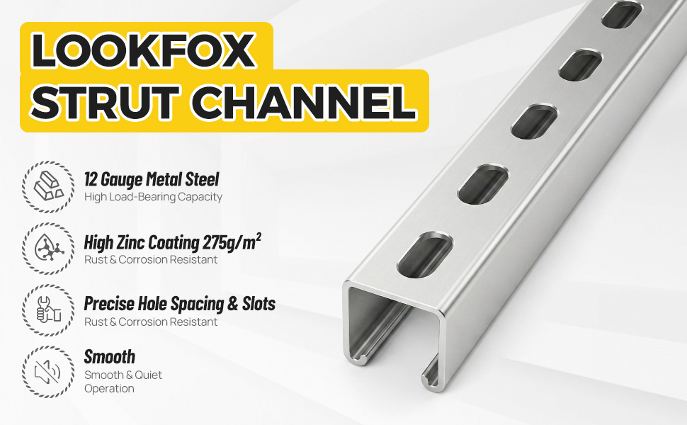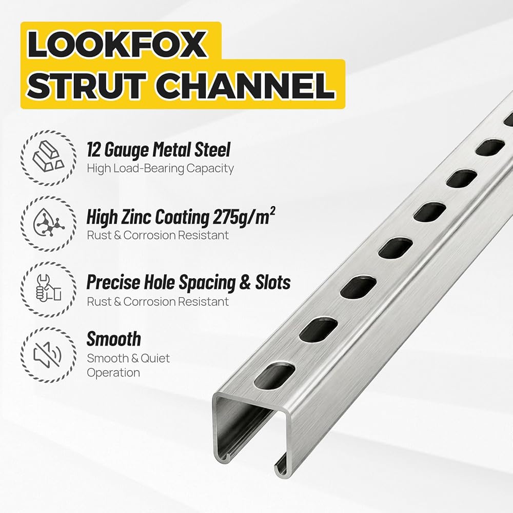 ☑️【Industrial-Grade Structural Support】Made from heavy-duty 12-gauge steel, this U strut channel provides robust and stable support for heavy-duty roller systems, ceiling suspensions, equipment installation, and pipe/cable tray systems. It serves as the core foundational component for movable suspension systems in workshops, warehouses, and garages.