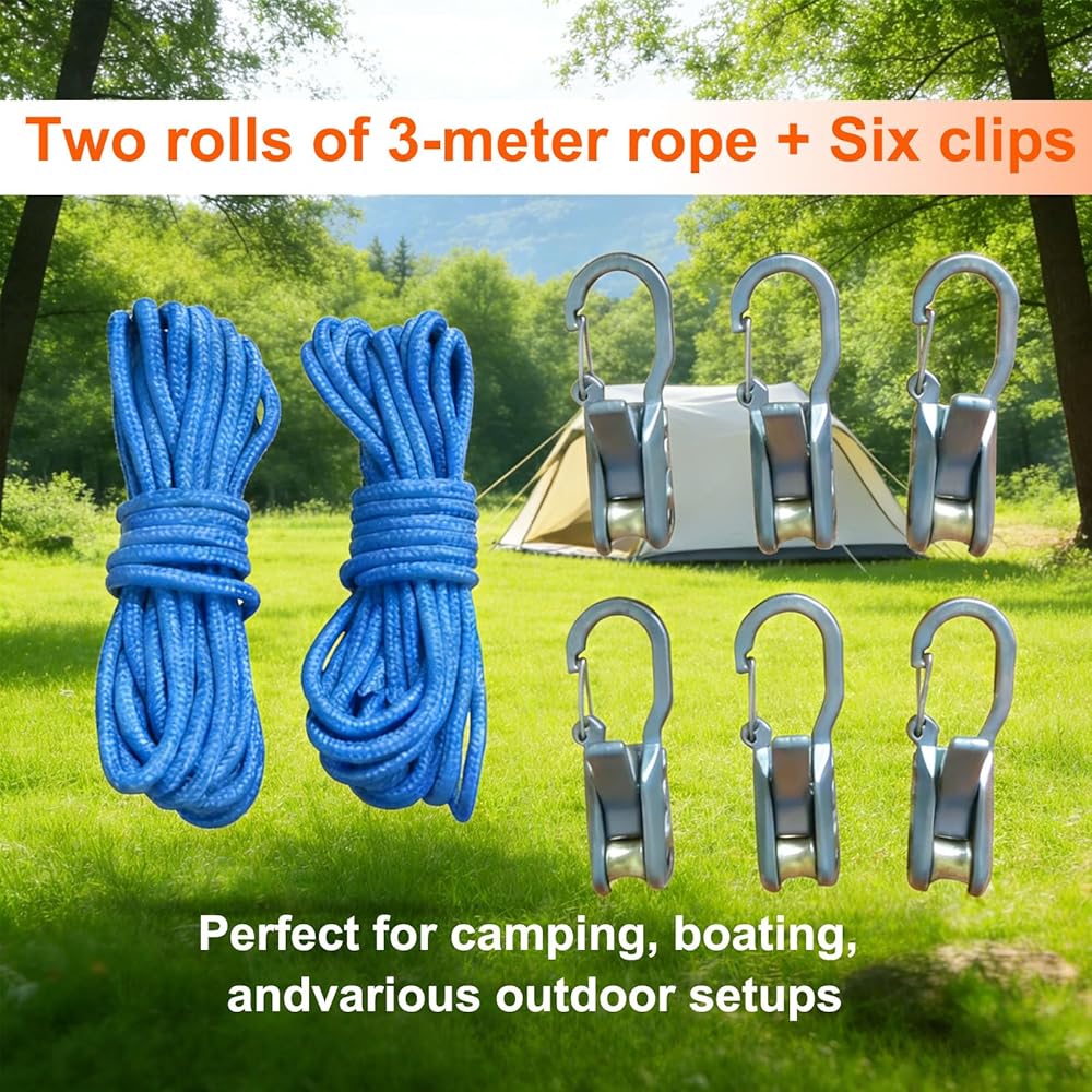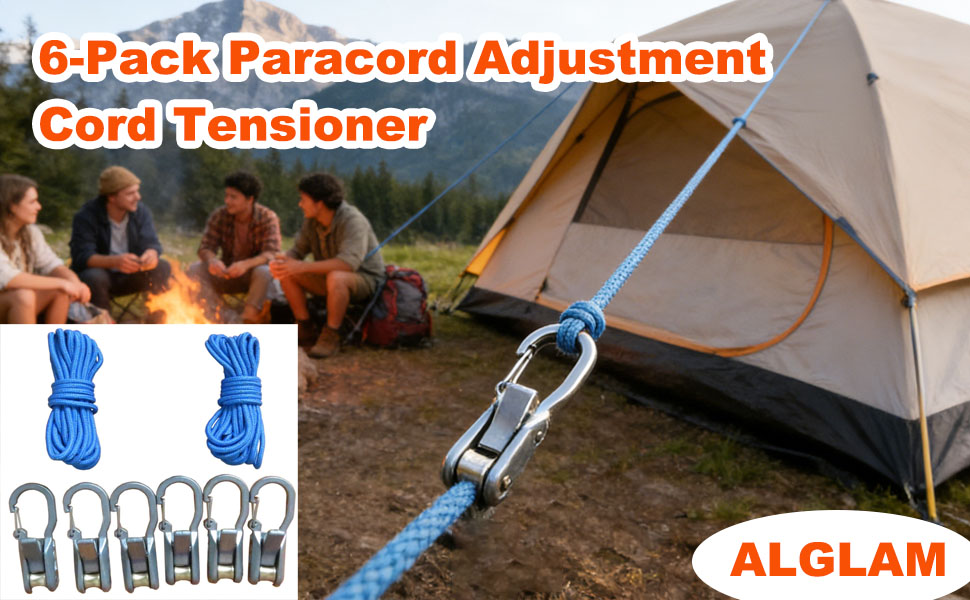 【Versatile Use Application】6 rope Paracord Adjustment and 2 bundles of 3M ropes, ideal for tent camping, boating, general outdoor activities. Equipped with locking buckle system, the rope tensioner maintains consistent tension under various conditions, provides reliable tension control for camping, boating, and various outdoor setups.