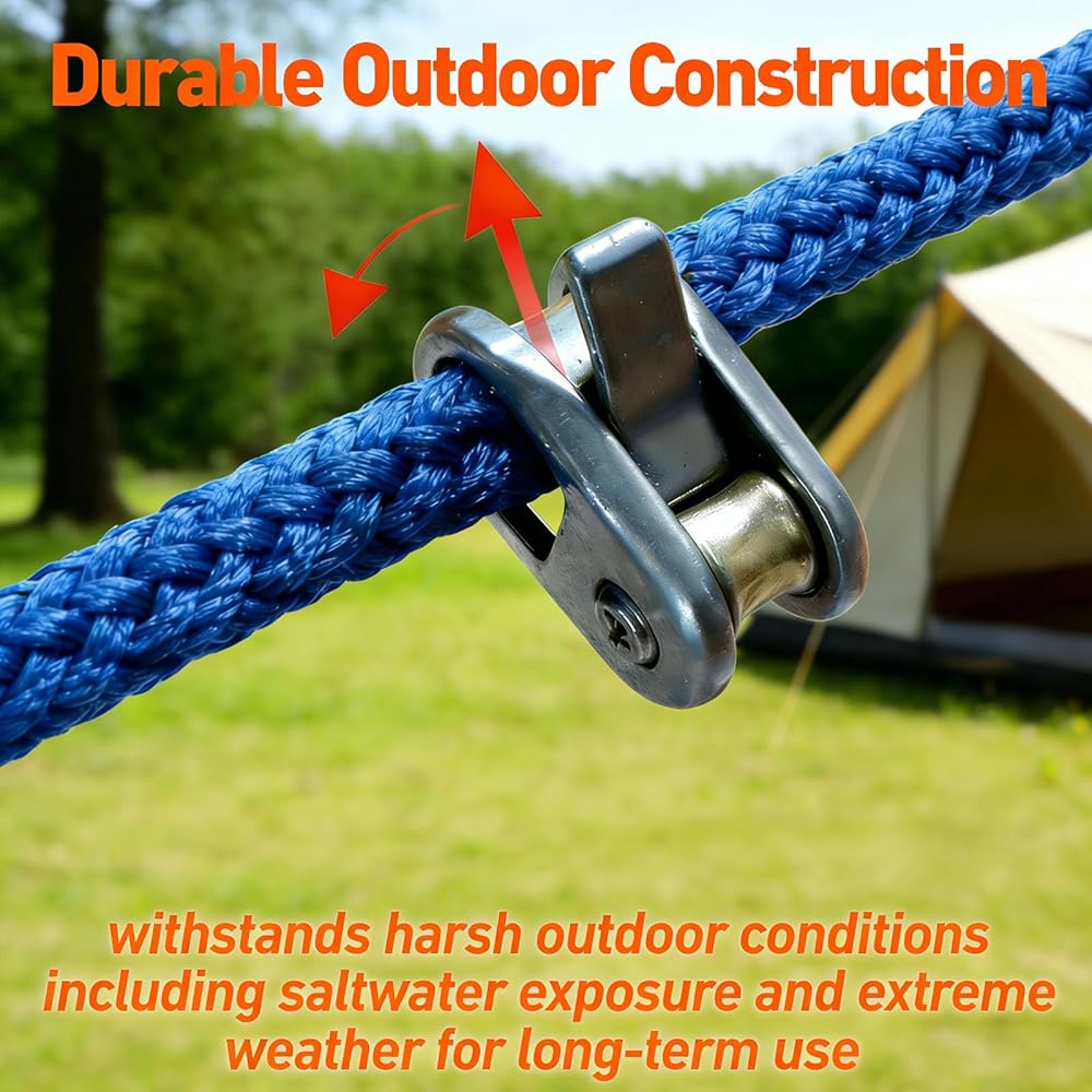 【Durable Outdoor Construction】Constructed from brass rollers, stainless steel springs, and an erosion-resistant cam, this rope tensioner withstands harsh outdoor conditions including saltwater exposure and extreme weather for long-term reliability.