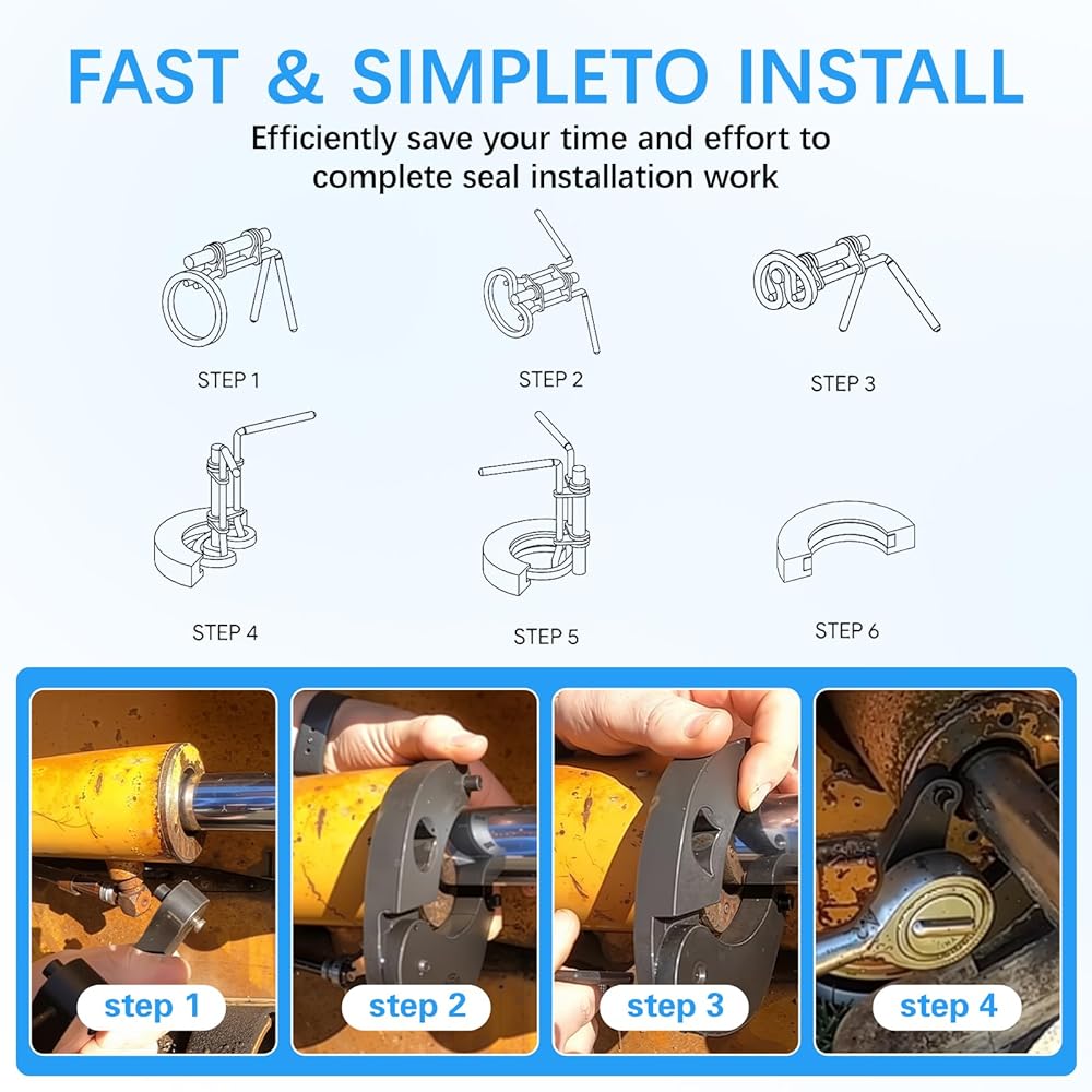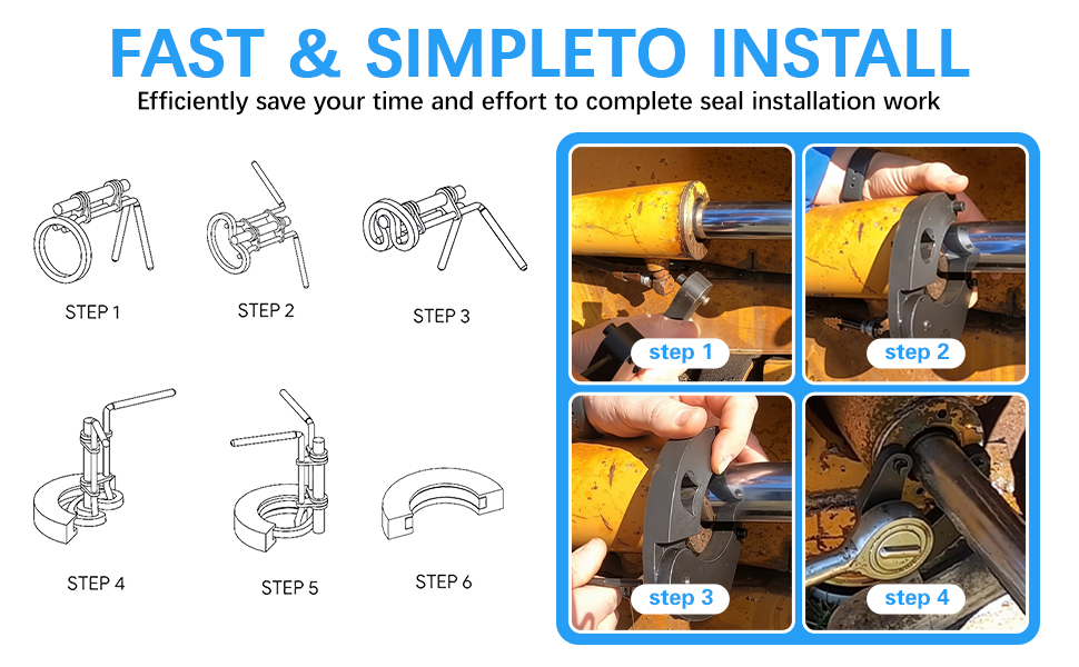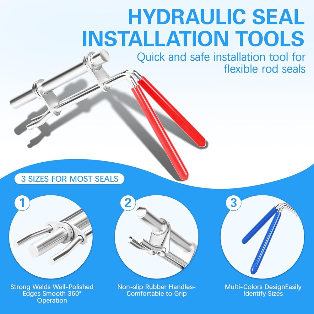 Hydraulic Seal Installer: Hydraulic Seal Installation Tools is a quick and safe installation tool for flexible rod seals. 3 sizes to cover most rod seal installation job from 0.87" up (Rod Diameters): (S) 22-40mm (0.87"-1.57" Rod) gland hole ; (M) 40-70mm (1.57-2.75" Rod) gland hole; (L) 70-165mm (2.75"-6.49" Rod) gland hole.