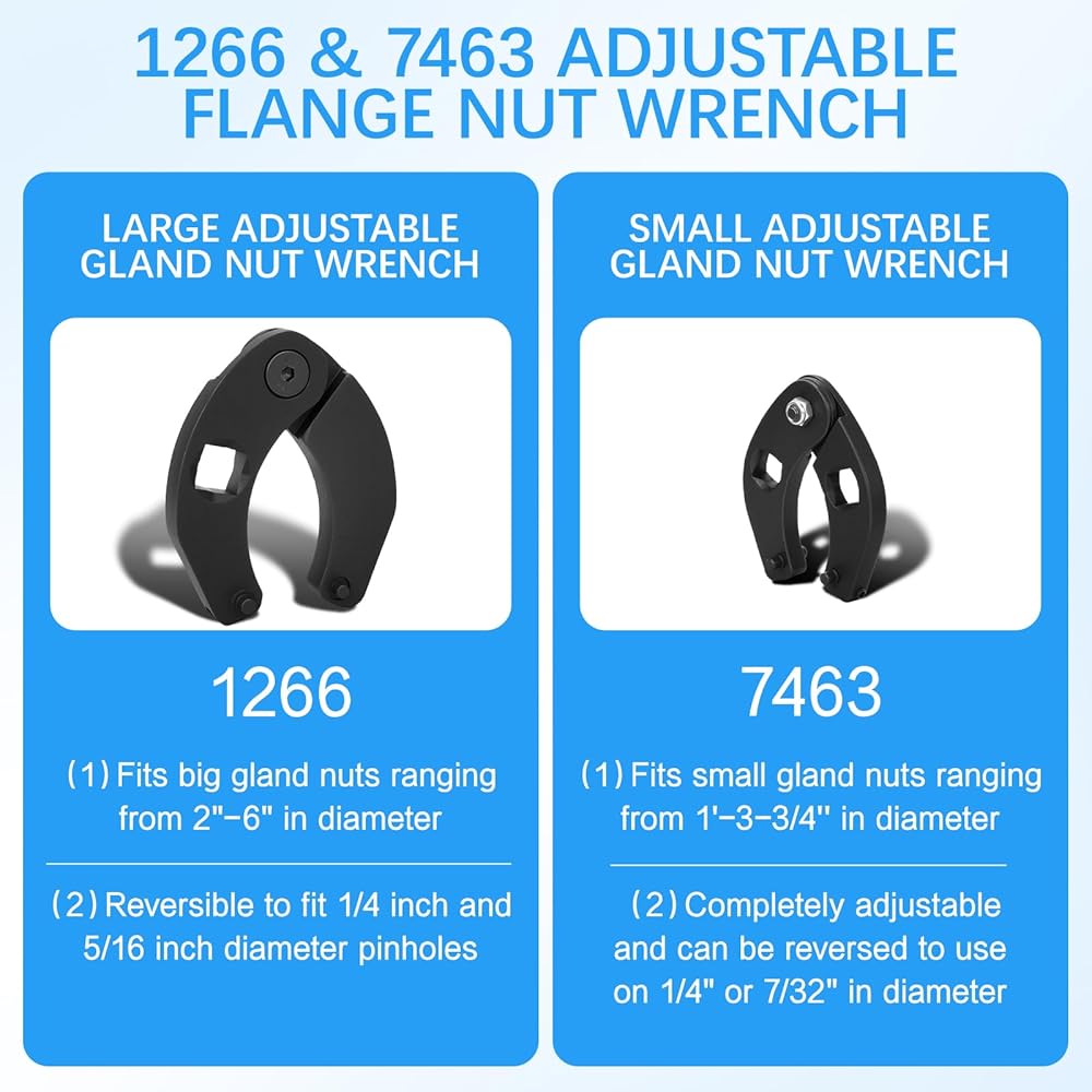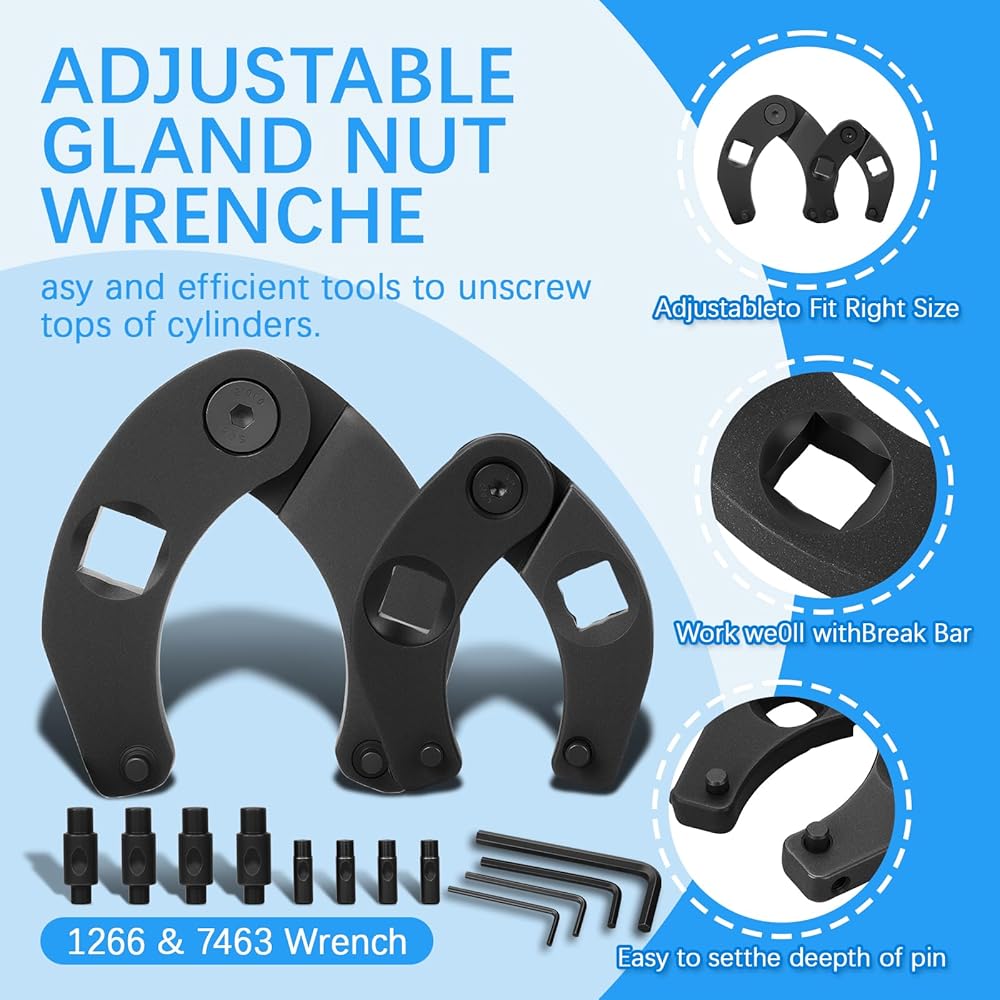 Super durable material: This 1266 & 7463 gland nut wrench is made of professional-grade carbon steel and features a rugged coating, making it ultra-durable and one of the best hydraulic cylinder tools. The sturdy washer in the hinging area keeps the nut wrench in shape, preventing it from slipping or moving during use.