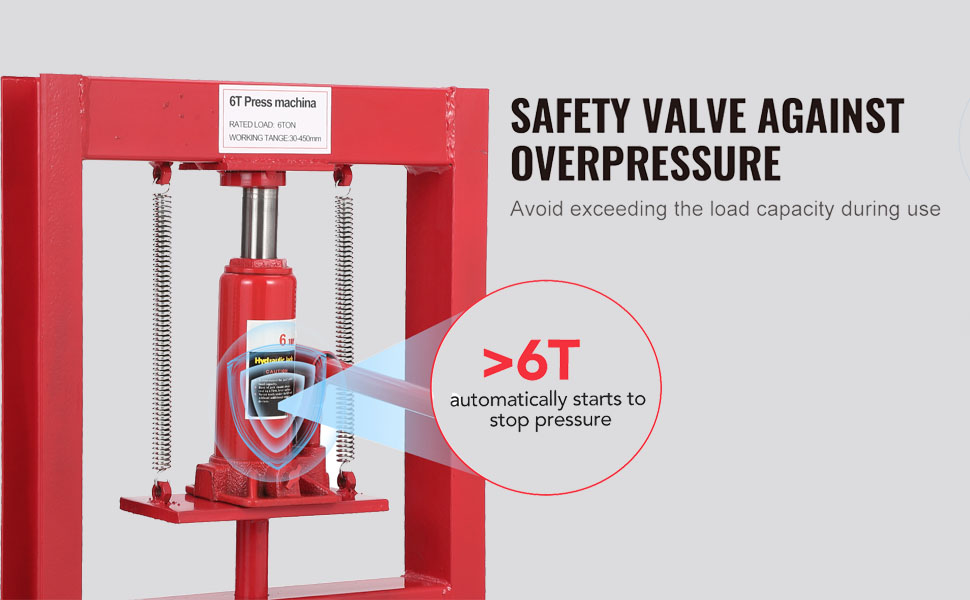 Ensure Safe Use: The hydraulic jack with a built-in relief valve is your perfect partner for heavy lifting tasks. With a clever design that ensures your security, this jack won't let you down . The relief valve kicks in automatically when the pressure exceeds 20 T, avoiding any overpressure-related damage to the workbench.
