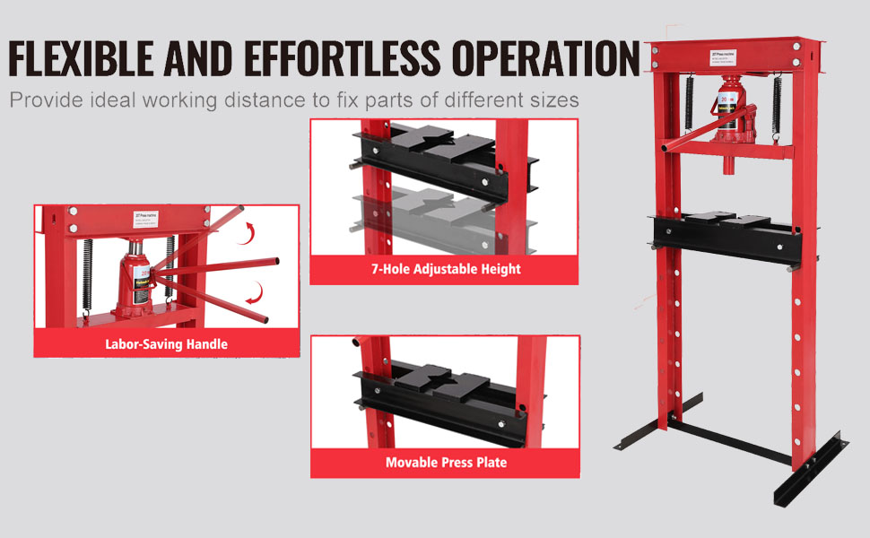 Robust & Stable Construction: Built with a sturdy H-frame design and durable carbon steel, the shop press offers excellent stability with no wobbling during operation. simply press or lift the long handle to perform tasks comfortably and efficiently.