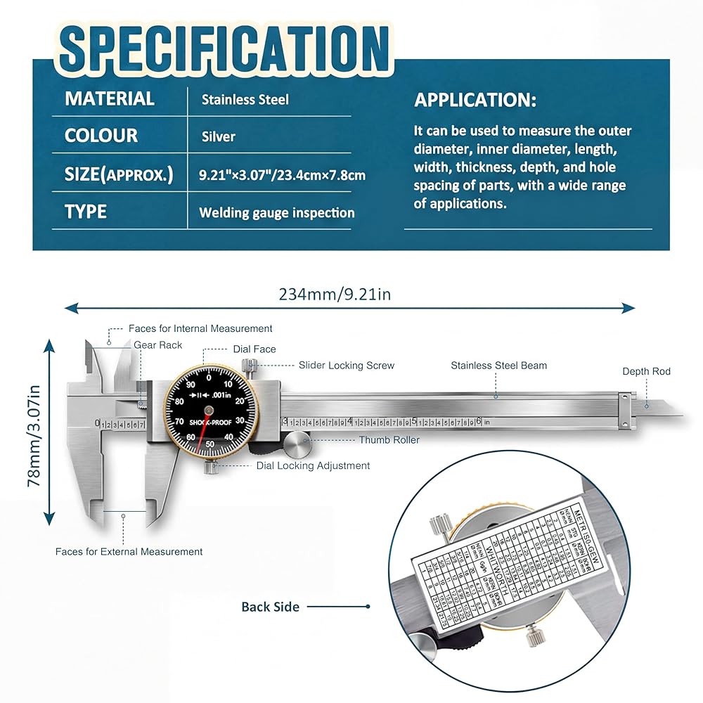 User-Friendly Design: The knurled thumb roller ensures smooth sliding; the locking screw secures precise settings; and the scratch-resistant, anti-glare measuring dial provides clear, easy reading.