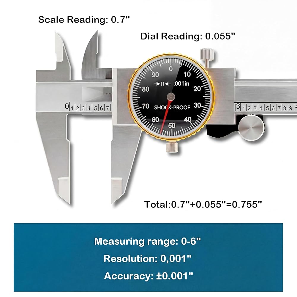 WeldingStop Precision 0-6" Dial Caliper Set with Protective Case - 0.001" Accuracy 4-Way Measuring Tool, Shock-Proof Stainless Steel, Ideal for Home & DIY Measurement
