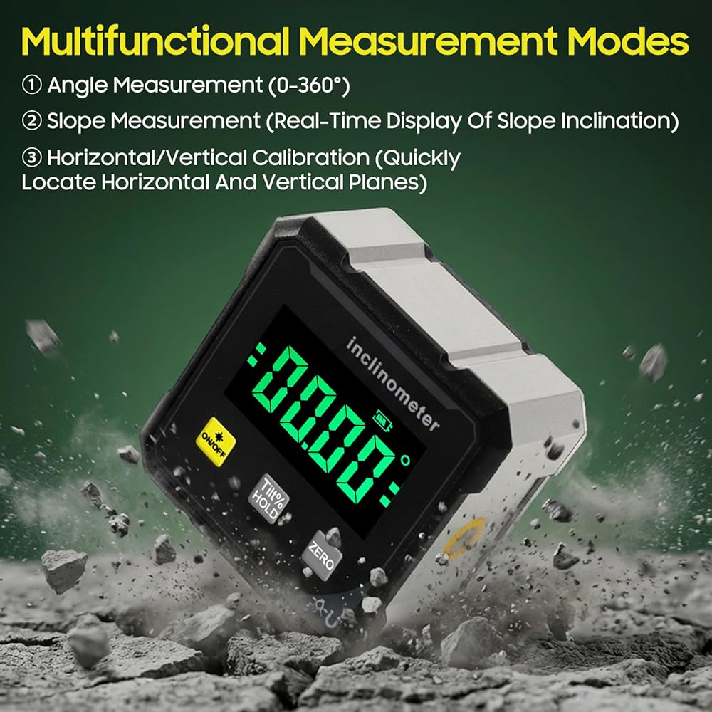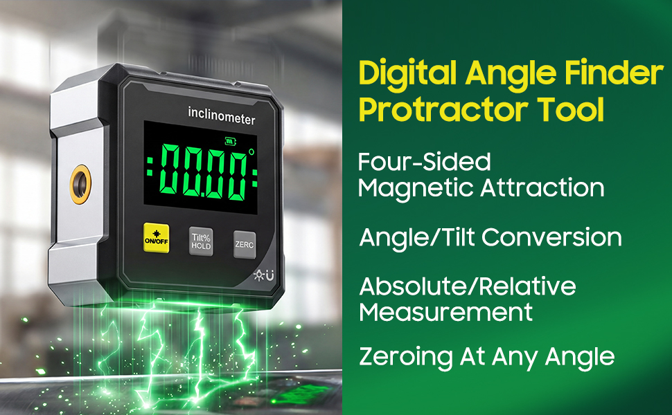 【Large Screen For Intuitive Operation】This Angle Measuring Instrument Features A Large, Visible Screen, Providing Clear Readings In Any Lighting Conditions. Operation Is Simple: Short Press To Power On, Long Press To Power Off, And A Dedicated Zeroing Button.