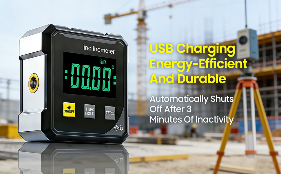 【USB Rechargeable】: This angle measuring tool is USB rechargeable and features a data hold function (freezing readings) and a 3-minute automatic shutdown function (to save power)