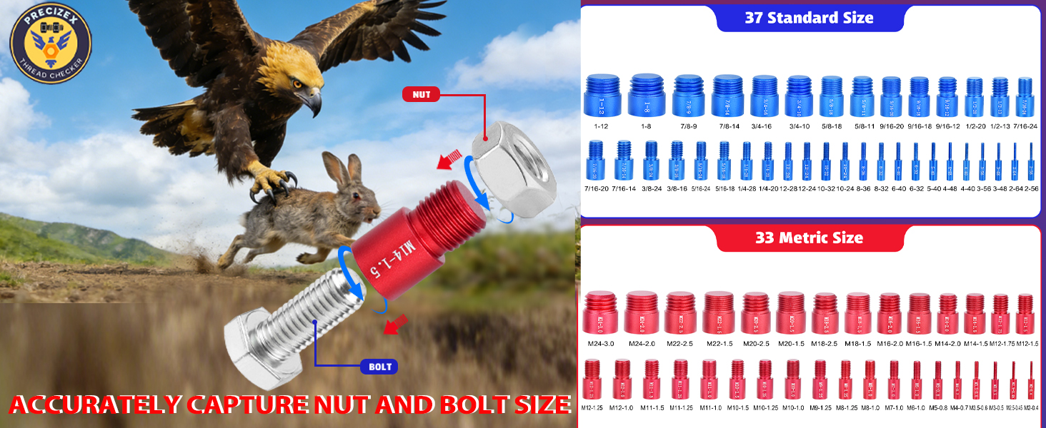 【Three Reading Methods】This bolt and nut identifier gauge offers three distinct ways to read sizes clearly—through engraved markings on the gauges, easy-to-read stickers on the foam storage, and color coding (blue for standard sizes and red for metric), ensuring you have multiple options at hand.