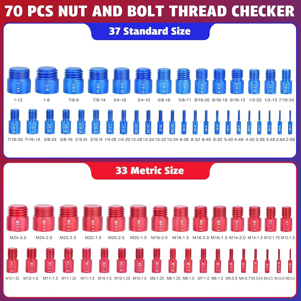 70 Pcs Thread Checker Nut and Bolt Thread Checker Set with 37 Inch and 33 Metric Box Set Thread Gauge SAE and Metric Sizes Perfect for Tight Spaces Ideal for Bolt and Nut Size Checking