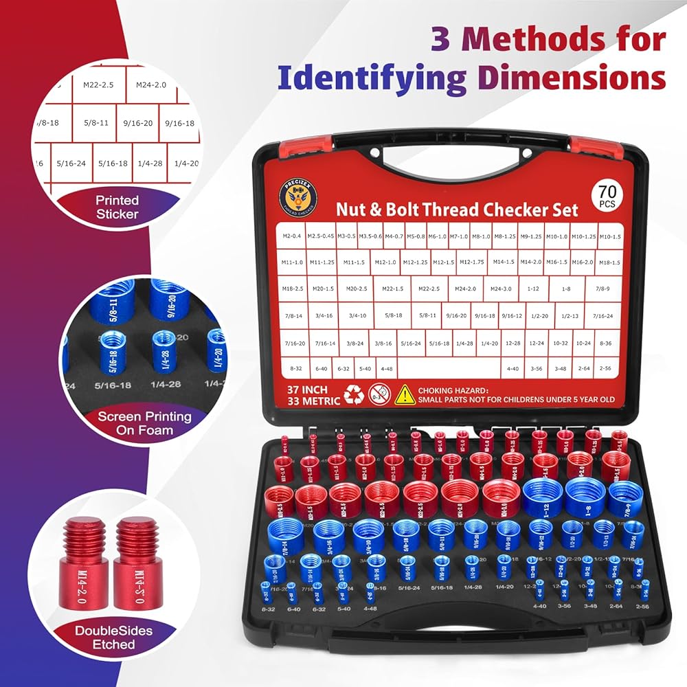 【Comprehensive Thread Gauge Set】This 70 pcs thread gauge kit includes 37 standard sizes and 33 metric sizes, allowing for quick and easy identification of screw sizes. Perfect for both professionals and DIY enthusiasts, this kit makes threading inspections seamless.