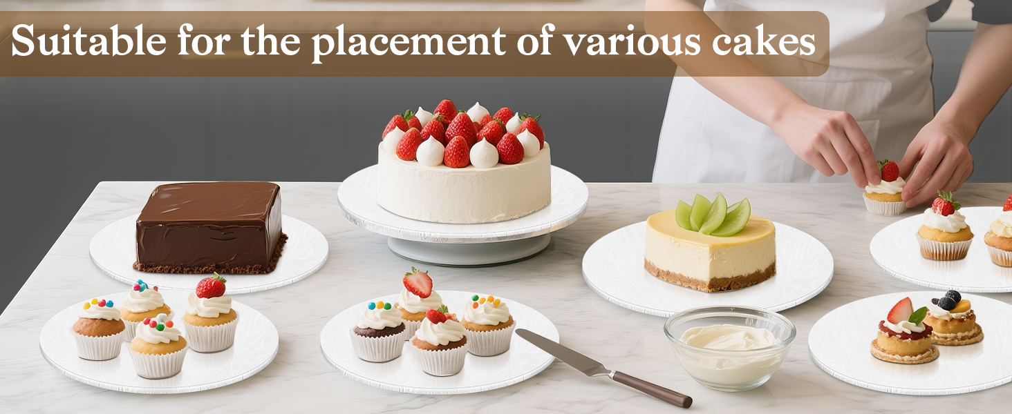 Suitable for Any Occasion: These 12 inch cake boards are suitable for various events and occasions, such as: birthdays, weddings, engagement parties, family gatherings, baby showers, etc. They can also be used as trays for cupcakes, pastries, bread and even pizza. The cake drum 12 inch is also suitable for daily use at home, dessert shops, bakeries, etc.