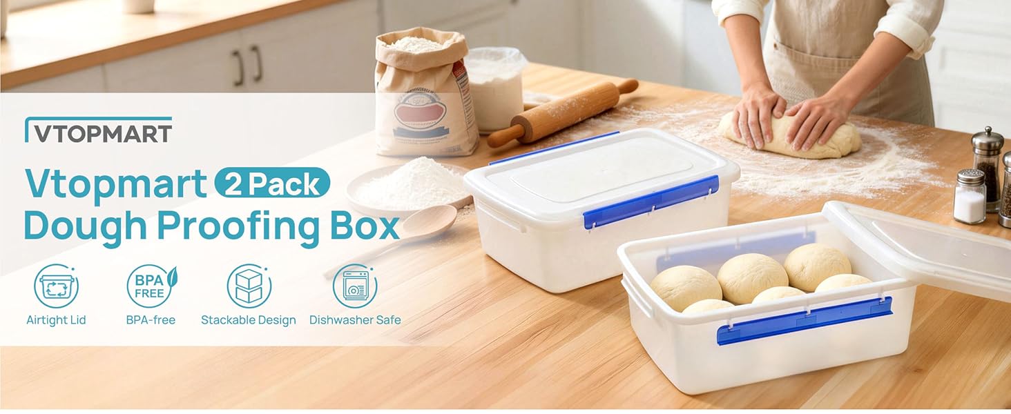 【Snap-On Lid】 Vtopmart proofing box secure snap-on locks,stays firm during stacking or transport—more durable than regular lids.