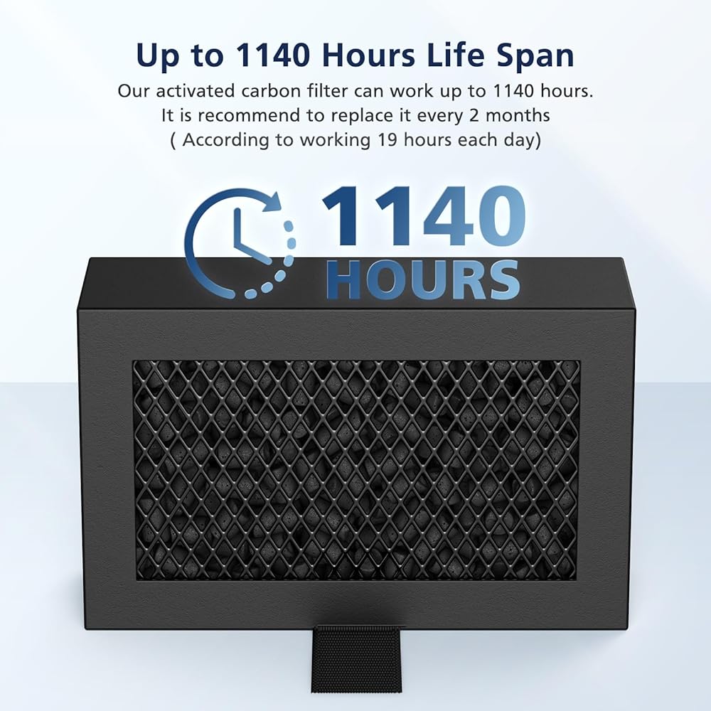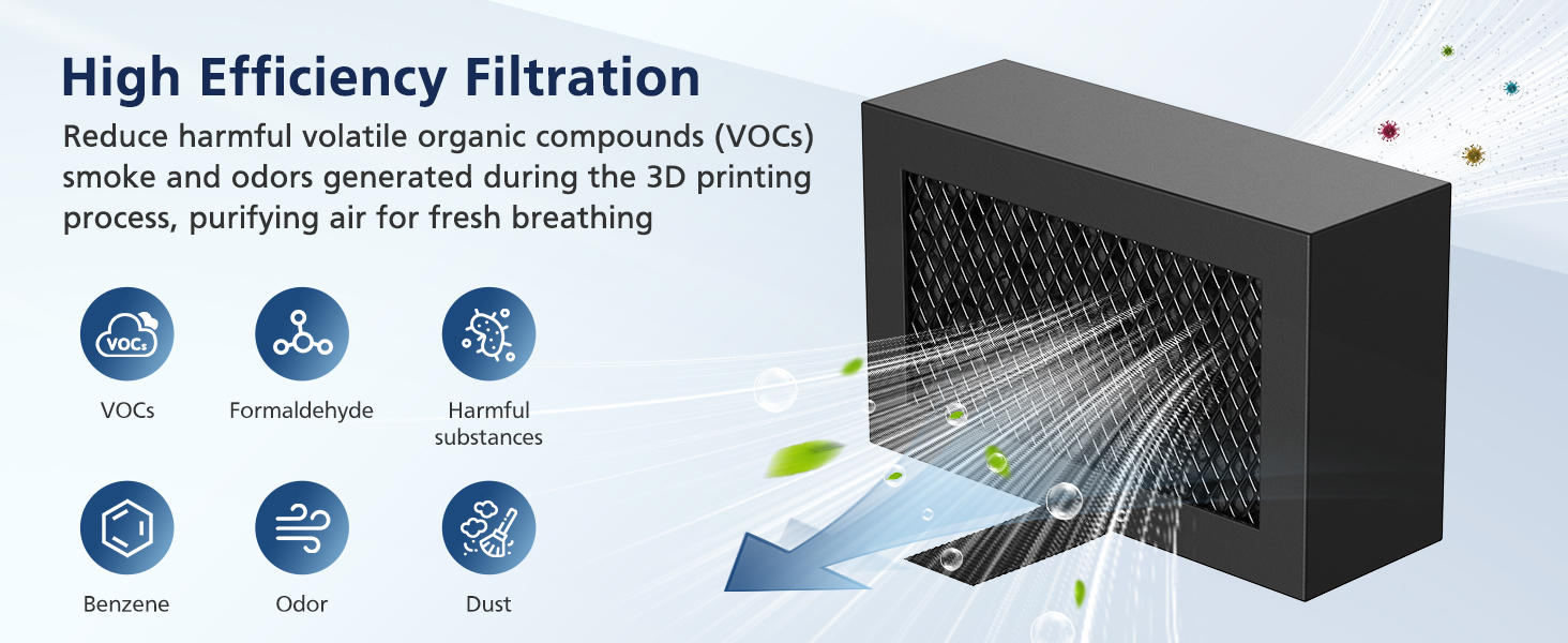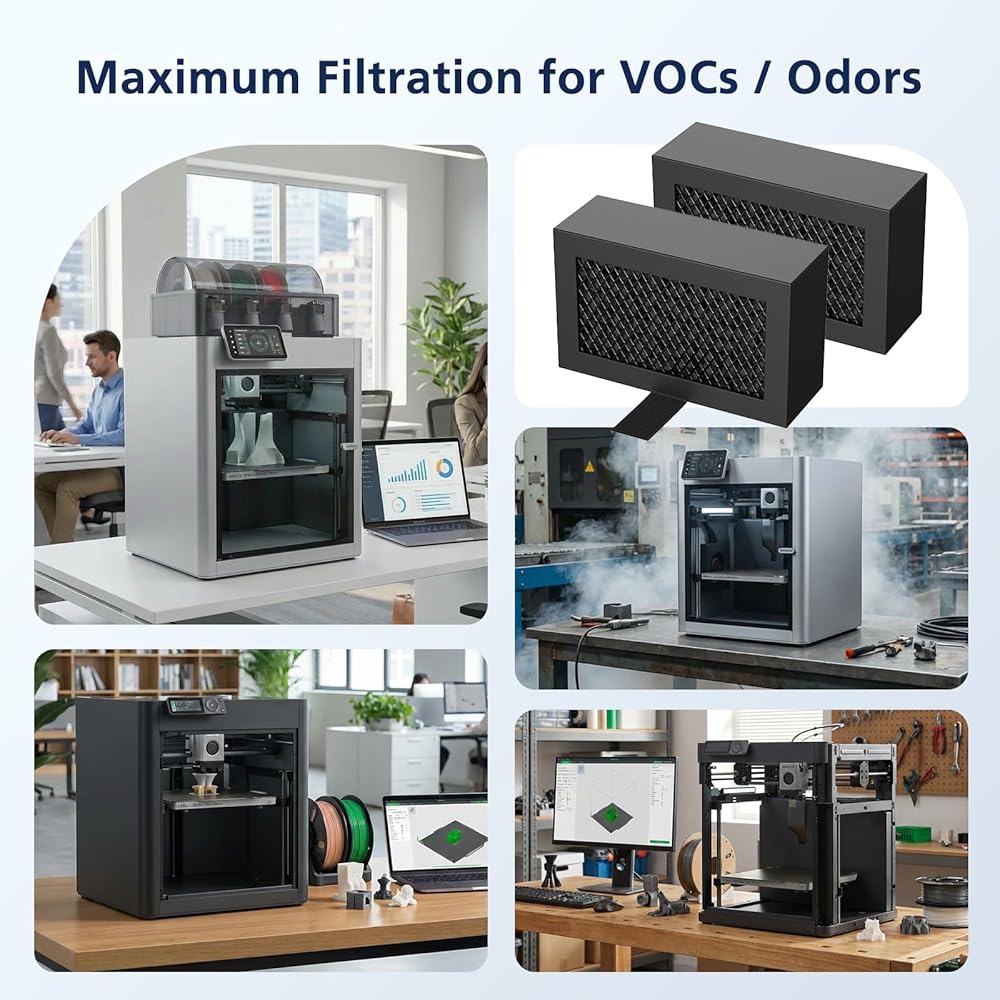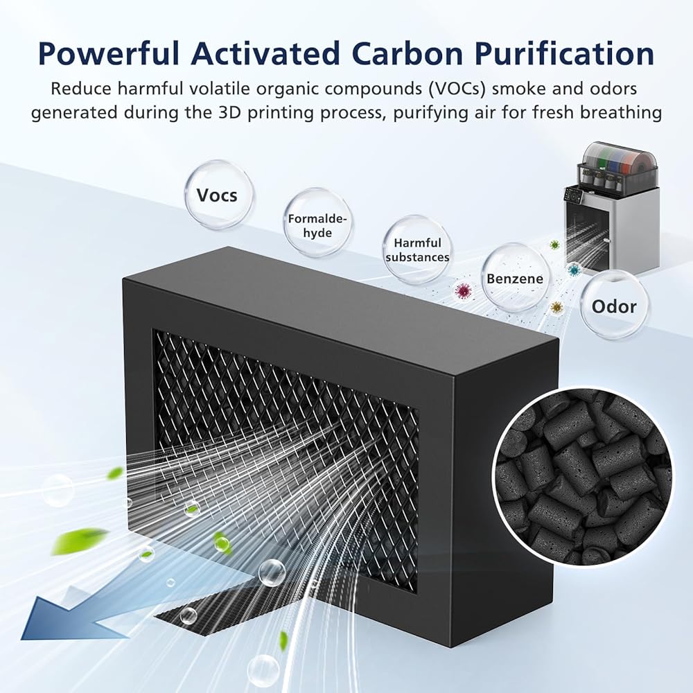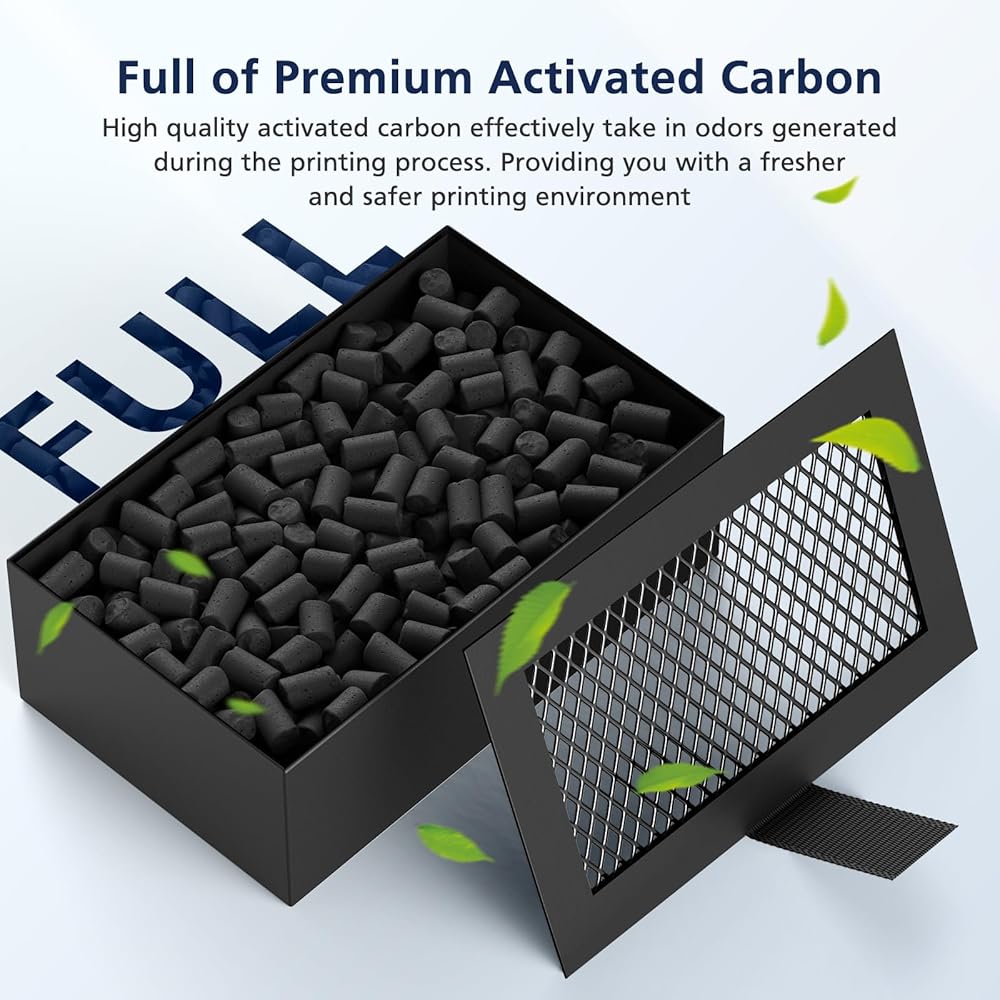 【OPTIMIZED CONSTRUCTION DESIGN】: Honeycomb matrix design of our activated carbon filter maximizes filtration surface area to enhance adsorption efficiency, ensuring superior air purification and improved indoor air quality during the printing process. The dense and fine mesh traps tiny particles, delivering exceptional air purification results. Your workspace feels cleaner