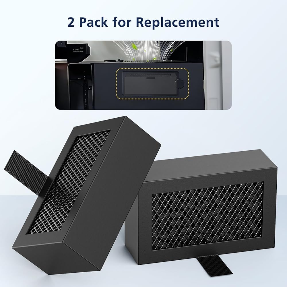 【WHAT YOU GET】: Package includes 2 pack air filters fit for bambu lab x1c 3D printer, ideal as spares or for dual-printer configurations. It is recommand replace the X1/X1C/P1P/P1S activated carbon filter replacement regularly