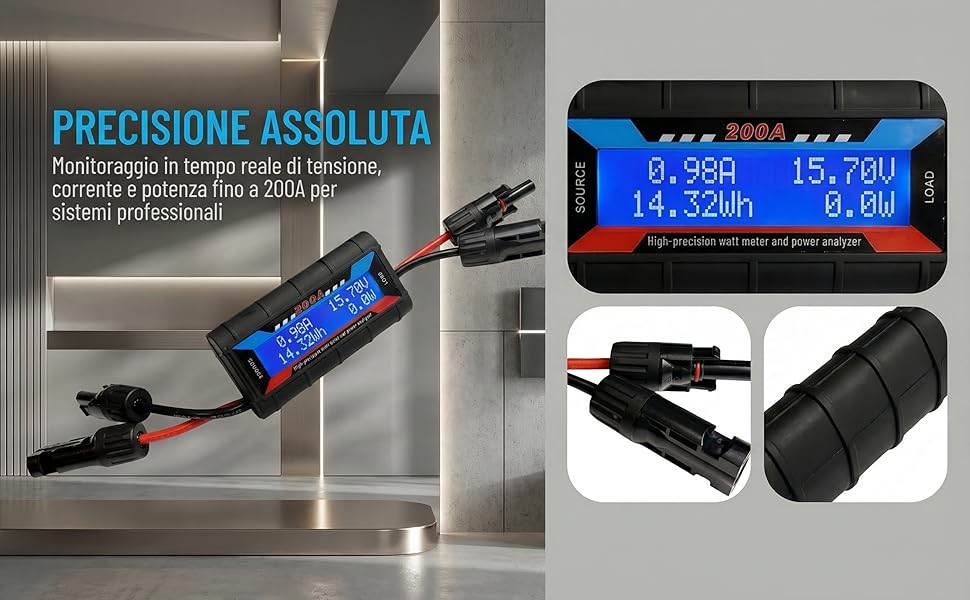 Comprehensive Measurement Capabilities: This multi-functional watt meter power analyzer accurately measures voltage, current (amp meter), power, discharge capacity, and time. It serves as both a solar panel tester and solar power meter, compatible with solar, wind, EV, and battery systems (voltage range: 4.8-60V).
