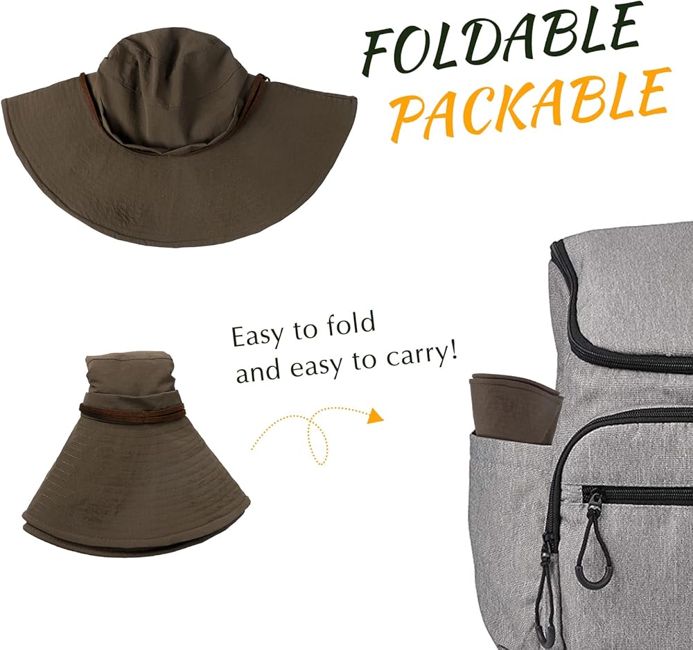 PACKABLE & LIGHTWEIGHT: This waterproof sun uv protection summer hat is foldable, easy to carry. Putting it in your backpack is convenient and can save space. The special fabric makes it less likely to crease. And this men sun gardening hat quality is very light, will not produce any pressure on your head, ideal for long outdoor activities, such as hiking, climbing, fishing and so on.