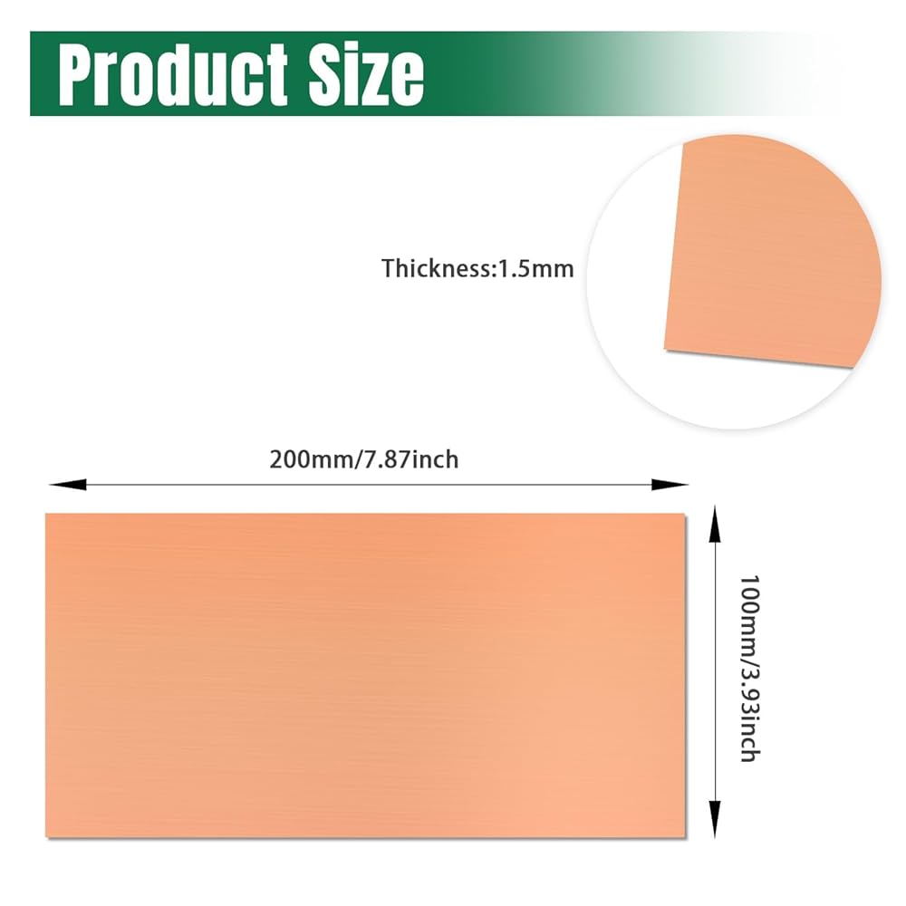 【Precise 4" x 8" 16 Gauge (1.5mm) Thickness】 – Measuring 4 inches by 8 inches with 16 gauge (1.5mm) thickness, this copper plate is perfectly sized for DIY projects, jewelry making, metal crafting, and various repair tasks. Easy to cut and shape with basic tools.