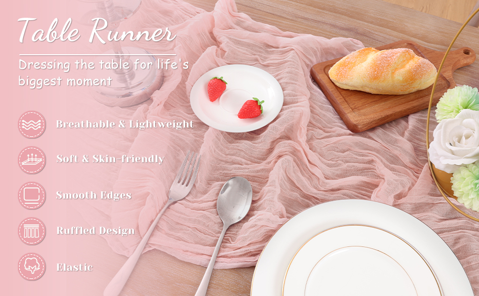 Skin-friendly Material for Lasting Comfort: Our pink table runner are made of high-quality cheese cloth, which has a soft and long-lasting texture, breathable and lightweight feel. They won't fade easily even after long-term use, and won't shrink even after multiple washes. After being folded and stored for a long time, they can be used again as fresh as new. Every time you unfold them, they add a sense of ceremony to your life and accompany every wonderful gathering.