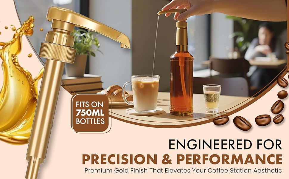 Strong Food Grade Material with Premium Gold Finish: Made from high quality food-safe plastic built for daily use. Strong pump head, thick tube, and secure cap last longer than cheap pumps. Gold finish gives a clean and professional look for coffee bars, kitchens, cafés, and drink stations.