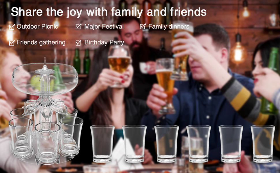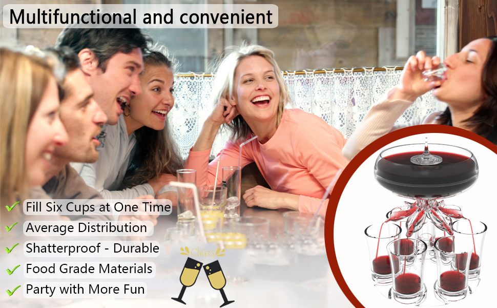 【Quick Pours 6 Shots At Once】The Glass Dispenser with six shots will allow you to easily fill up to six shot glasses at once with your favorite beer &beverage and then hold them up, all in one! Fills up multiple shot glasses at one time, saves your time, prevents wastage, or spillages.This is latest new idea. U will like it !