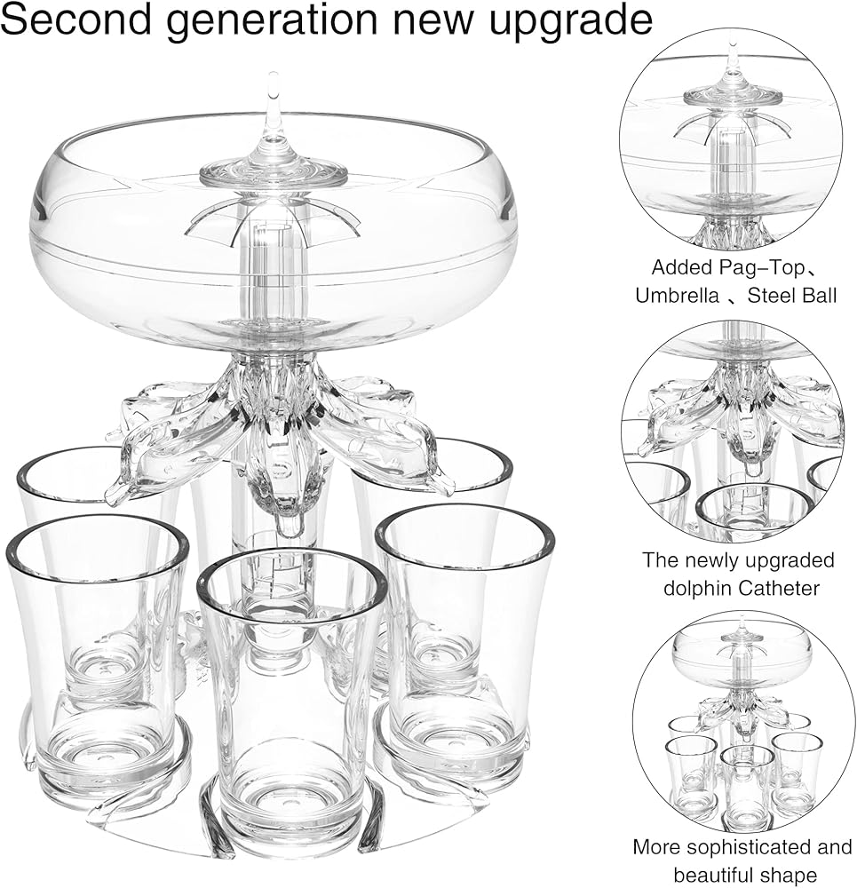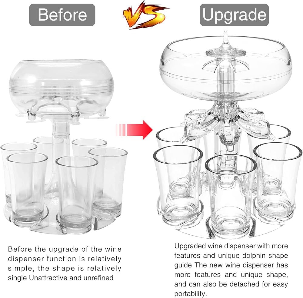 ALEVMOOM 6 Shot Glass Dispenser and Holder, Dispensers For Filling Liquids Multiple 6 Shot Glass, Acrylic Touchless Liquor Dispenser for Drink Cocktail Juice - Fun Bar Accessories Drink Tool