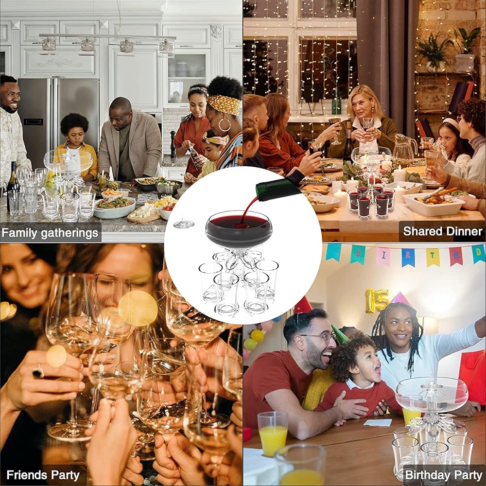 【NEW DESIGN AND MATERIAL】Liquid MUST be poured into the direct center to ensure even distribution into each shot glass!ALL shot glasses dispenser are 3D Printed out of SAFE ACRYLIC Food Safety plastic,high infill to ensure sturdiness, we will make it better!