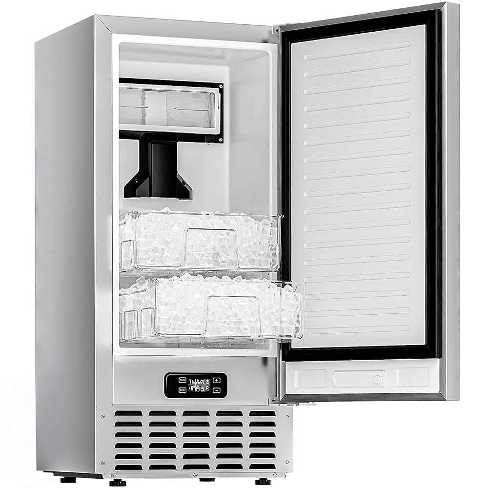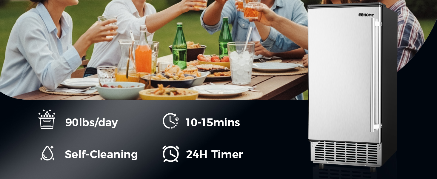 High-Efficiency Under Counter Ice Maker:This commercial under counter ice maker machine produces up to 90 lbs of clear ice per day, delivering 40 ice cubes every 10–18 minutes. The 24 lb storage bin provides a reliable supply, making this ice maker commercial ideal for home kitchens, bars, restaurants, hotels, and cafés.