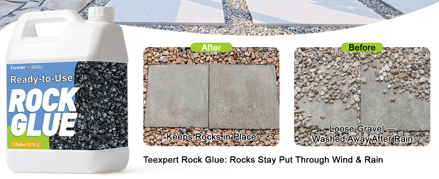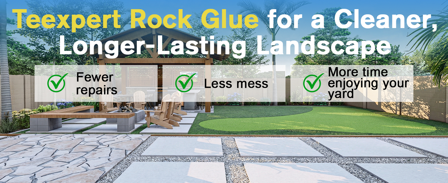 Keeps Gravel Neat & Yard Clean - Teexpert rock glue for landscaping locks pea gravel and small stones firmly in place, making leaves easy to blow away and preventing rain from washing rocks loose. This rock glue for pea gravel keeps your yard clean and organized while reducing ongoing maintenance and replacement costs.