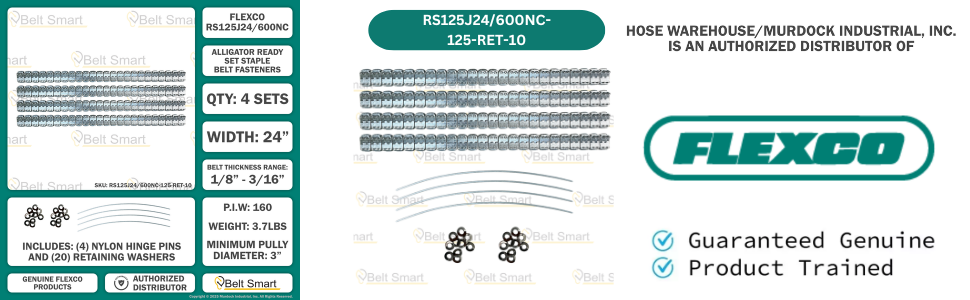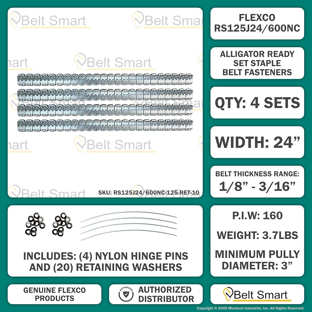 Genuine Flexco RS125J24/600NC Alligator Ready Set Staple Fastener (Box of 4 Sets) - Includes 10 Additional 125-RET Retaining Washers