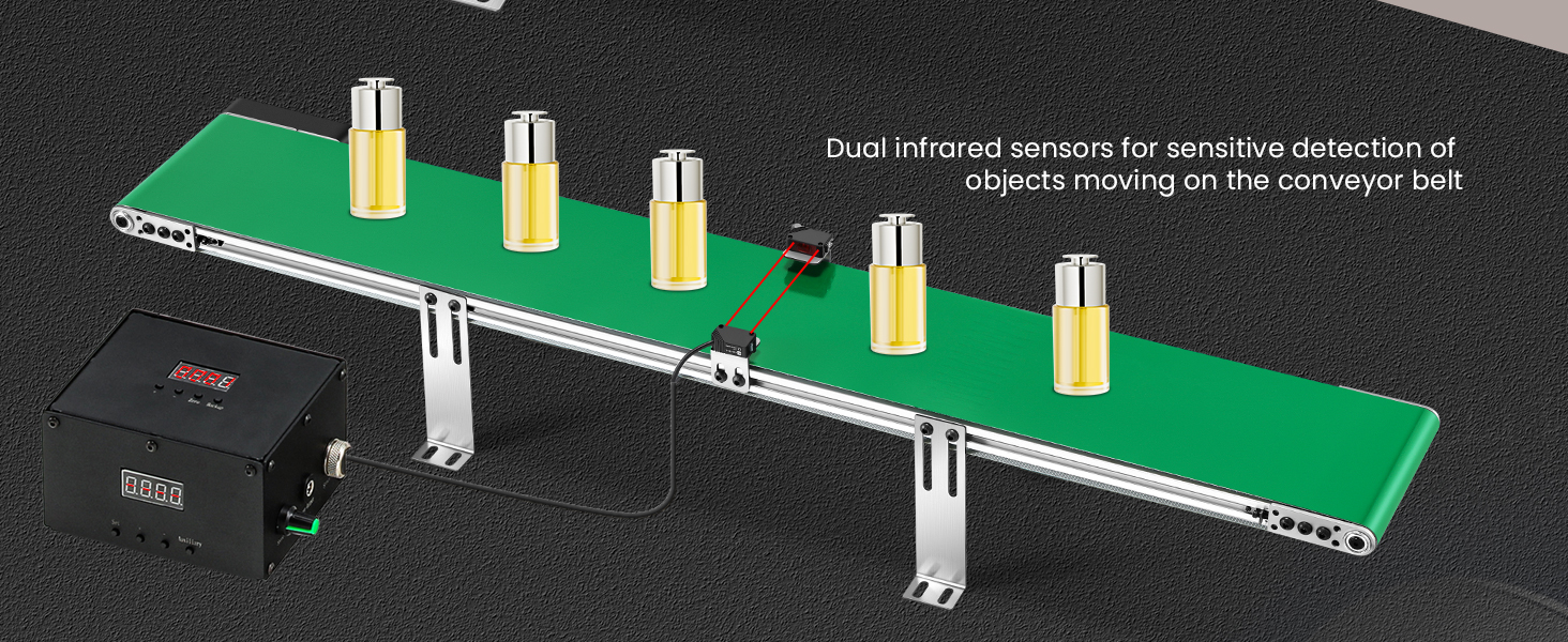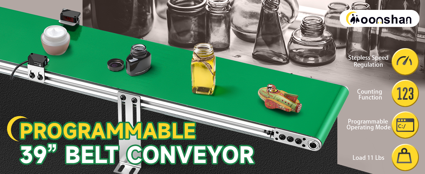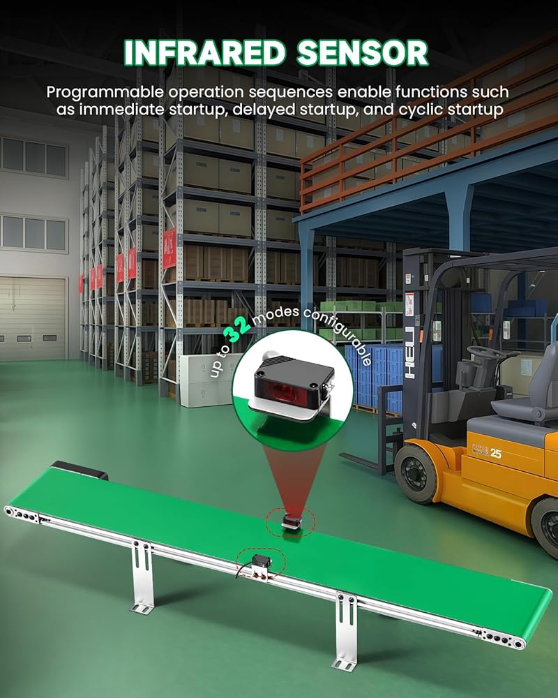 Belt Conveyor 39 inch Conveyor with Sensor, Multi Operation Program, Desktop Version Step-Less Speed Adjustment PVC Belt Conveyor for Packaging Factory, Production Line, Home